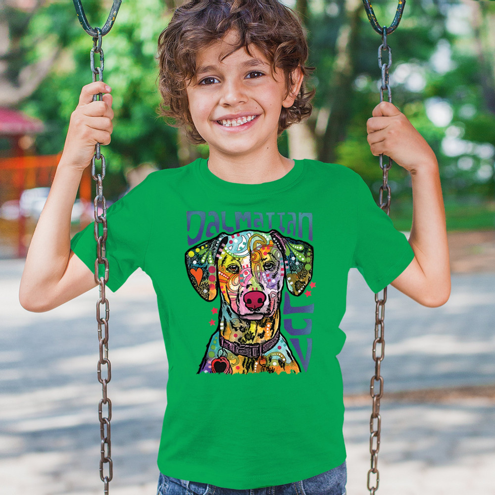 DEAN RUSSO DALMATIAN LUV COLORFUL DOG youth t-shirt neon puppy lover kids green