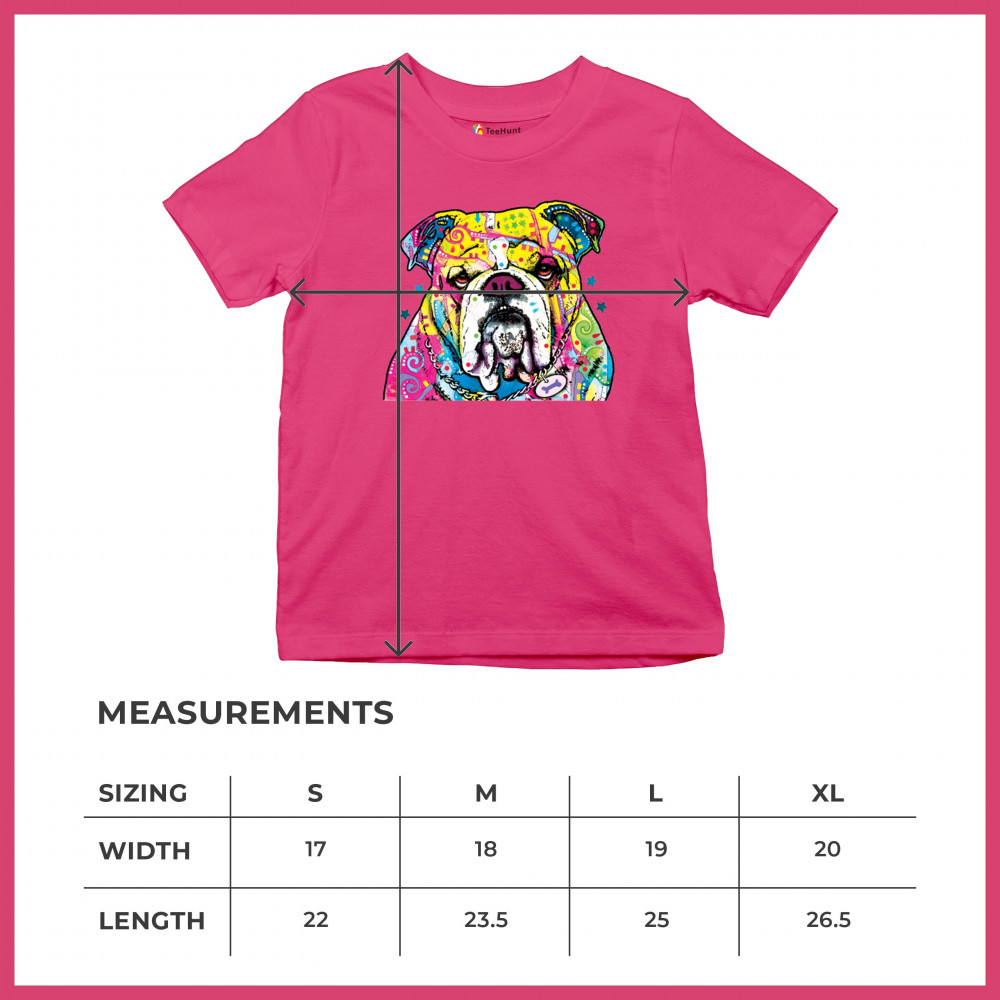 DEAN RUSSO SERIOUS BULLDOG youth t-shirt colorful dog best friend kids pink
