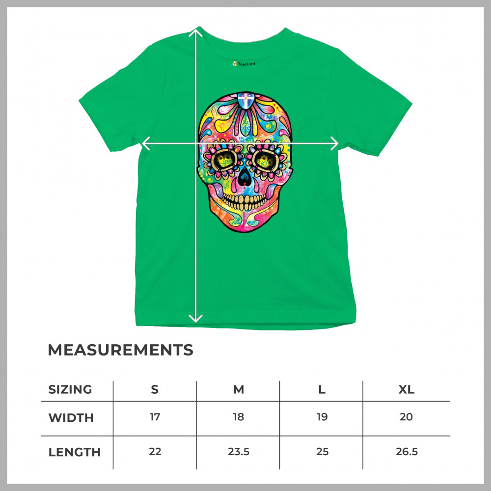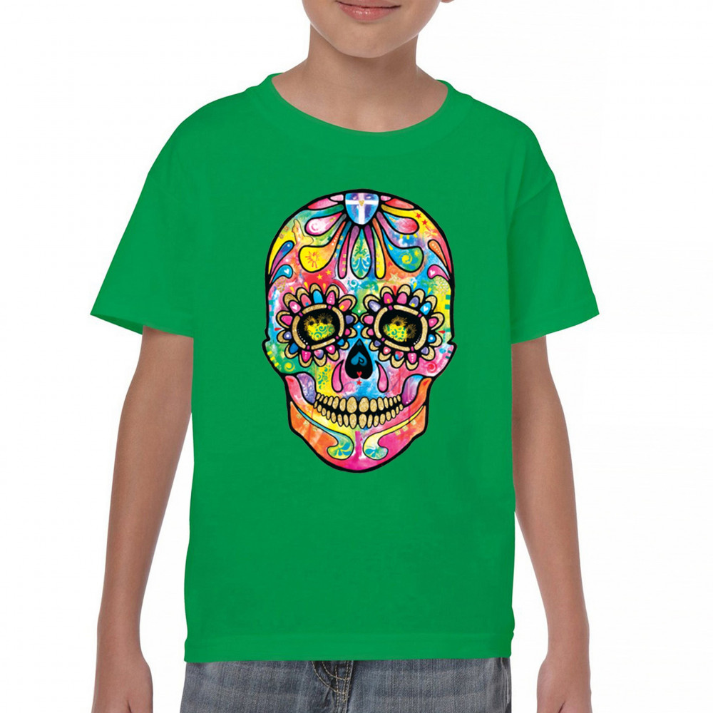 DEAN RUSSO SUGAR SKULL youth t-shirt day of the dead neon calavera kids green