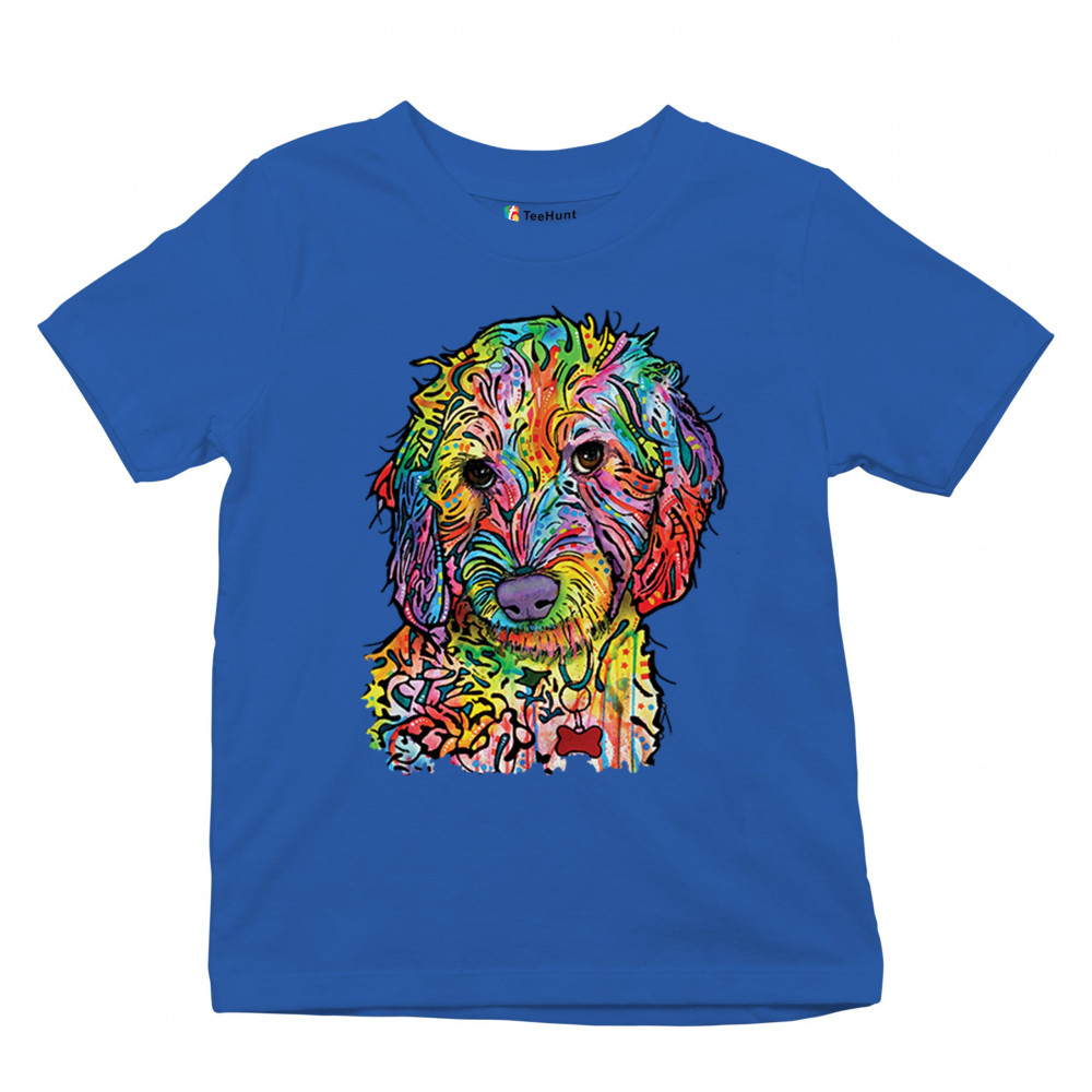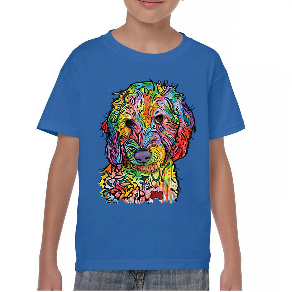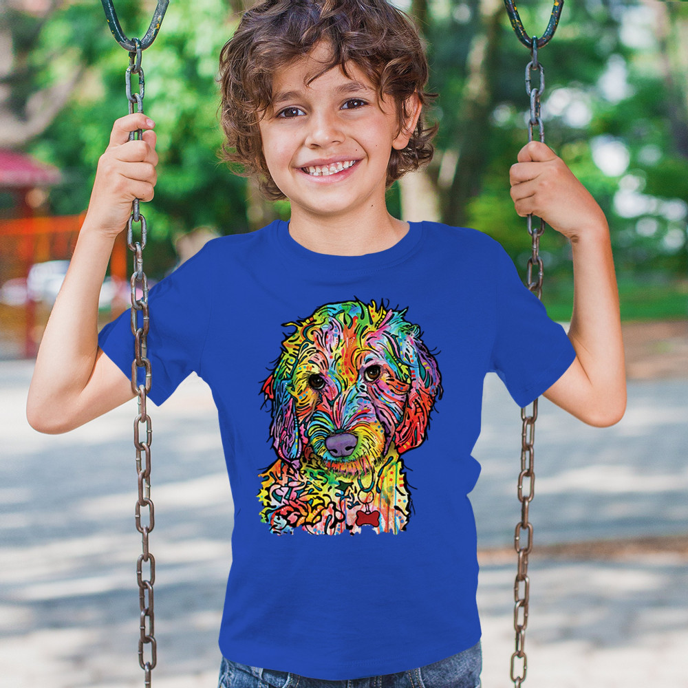 DEAN RUSSO SWEET POODLE youth t-shirt dog pattern puppy adopt pet kids royal blue