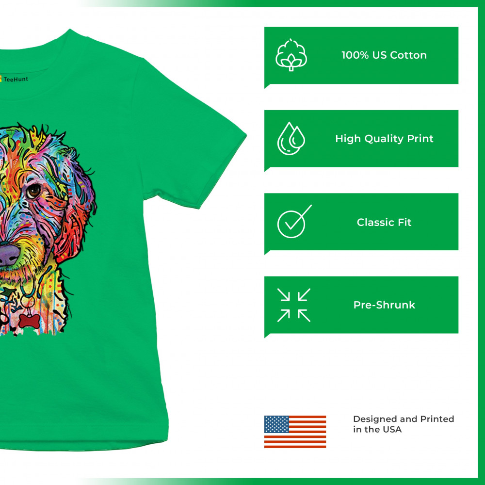 DEAN RUSSO SWEET POODLE youth t-shirt dog pattern puppy adopt pet kids green