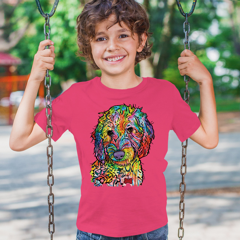 DEAN RUSSO SWEET POODLE youth t-shirt dog pattern puppy adopt pet kids pink