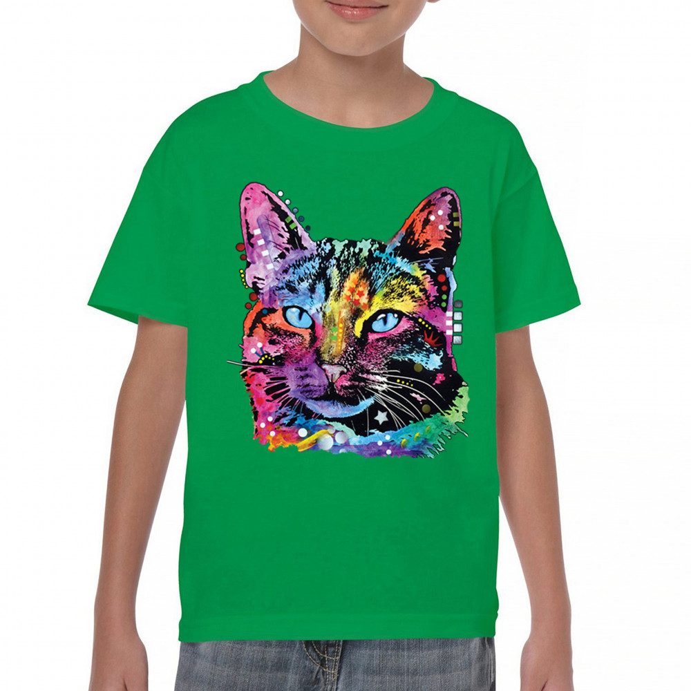 DEAN RUSSO THOUGHTFUL CAT youth t-shirt colorful pet kitten eyes kids green