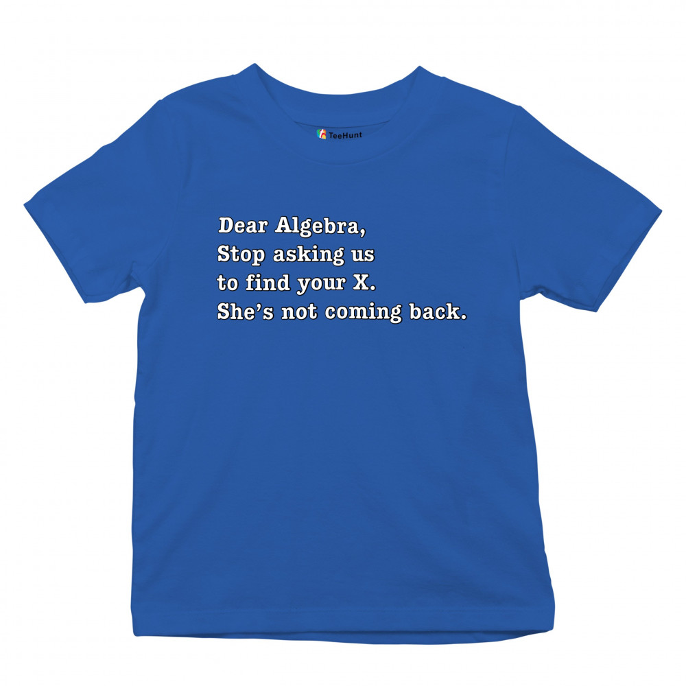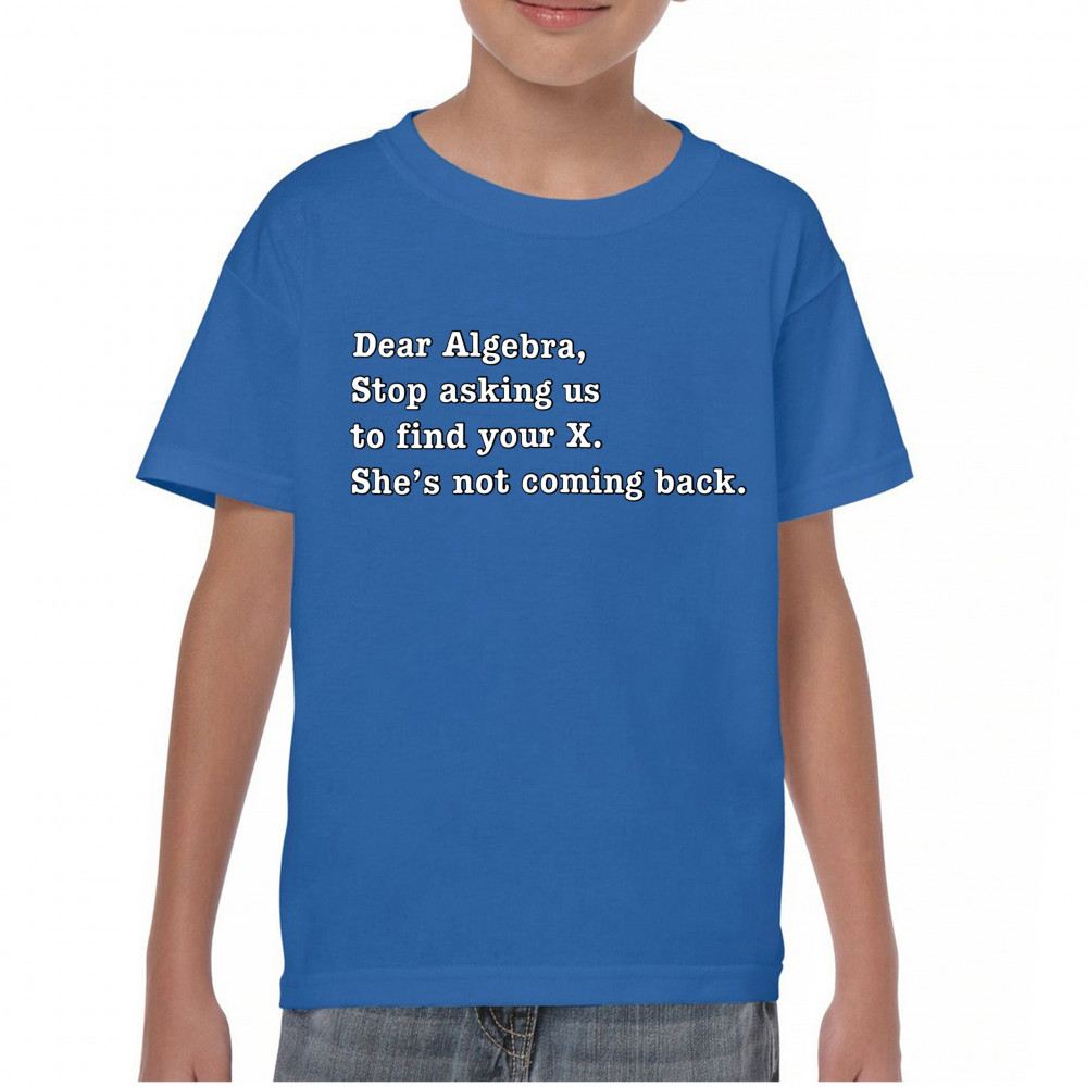 DEAR ALGEBRA STOP ASKING US TO FIND YOUR X youth t-shirt funny humor kids royal blue