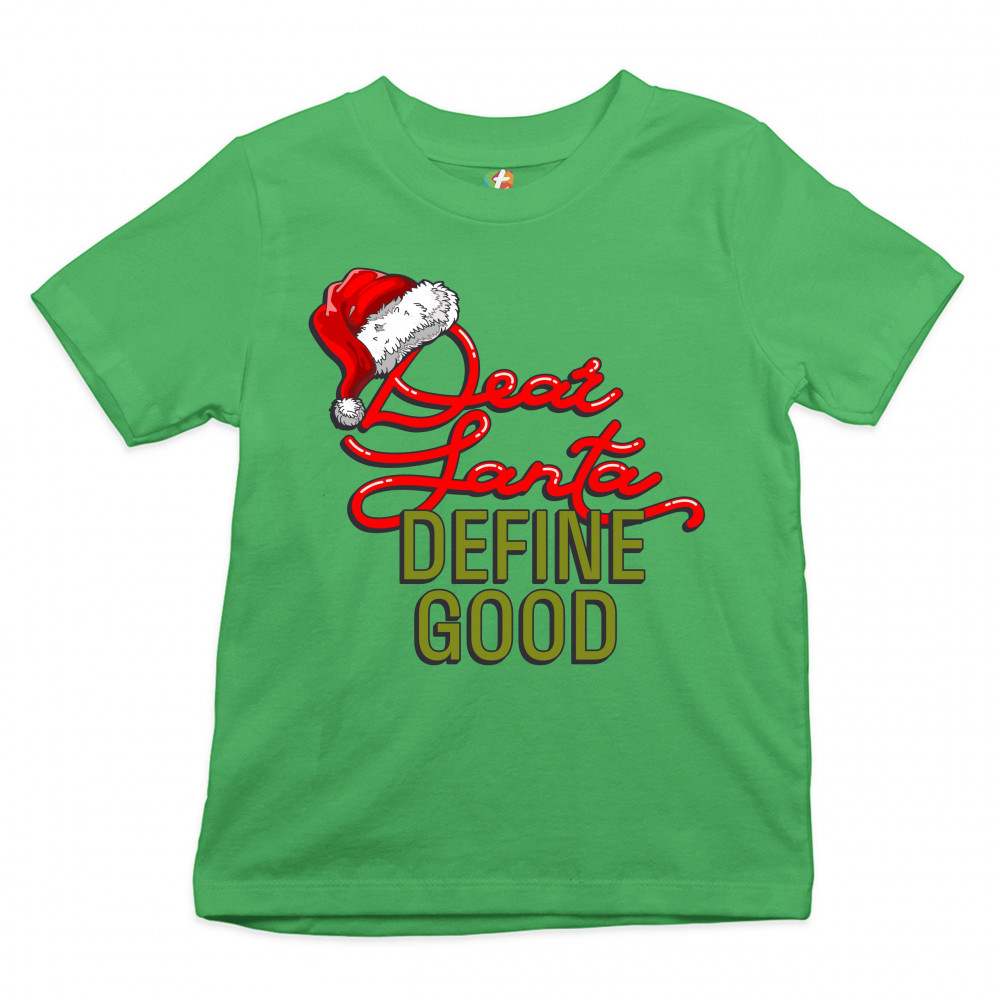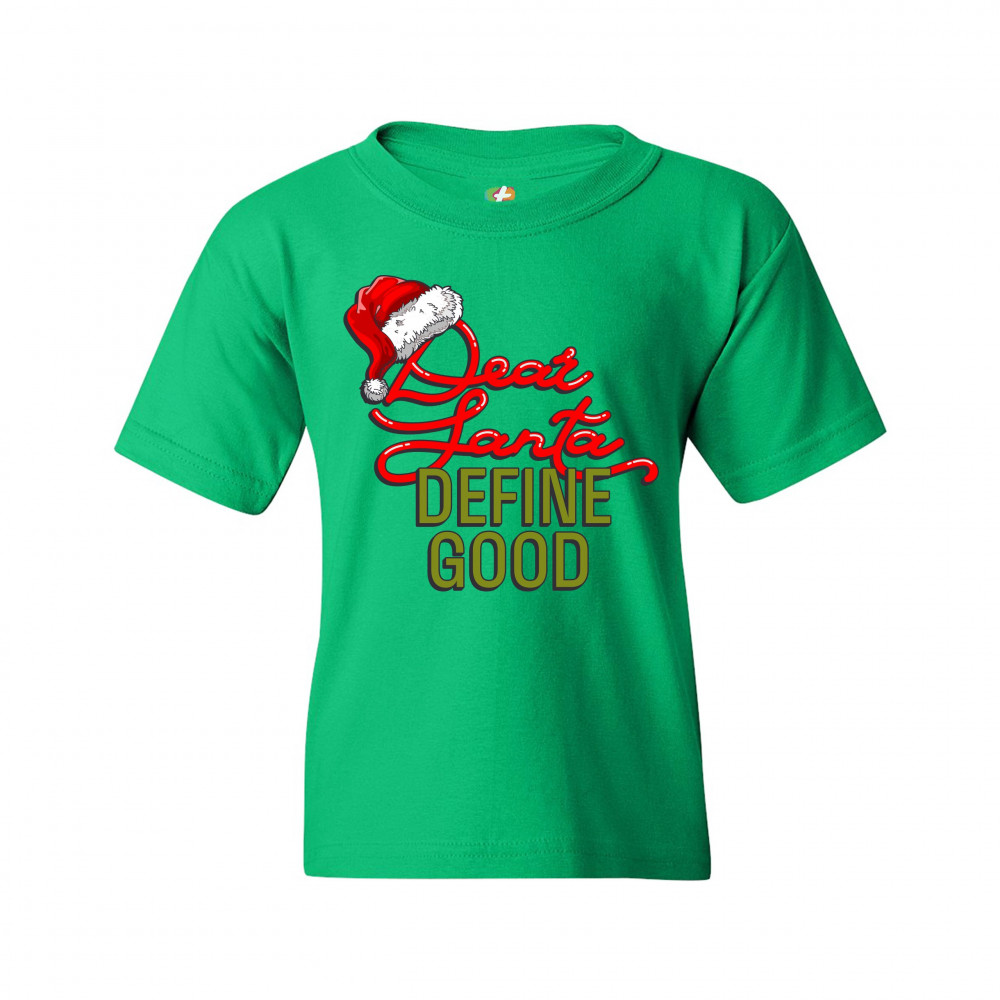 DEAR SANTA DEFINE GOOD youth t-shirt merry christmas naughty or nice kids green