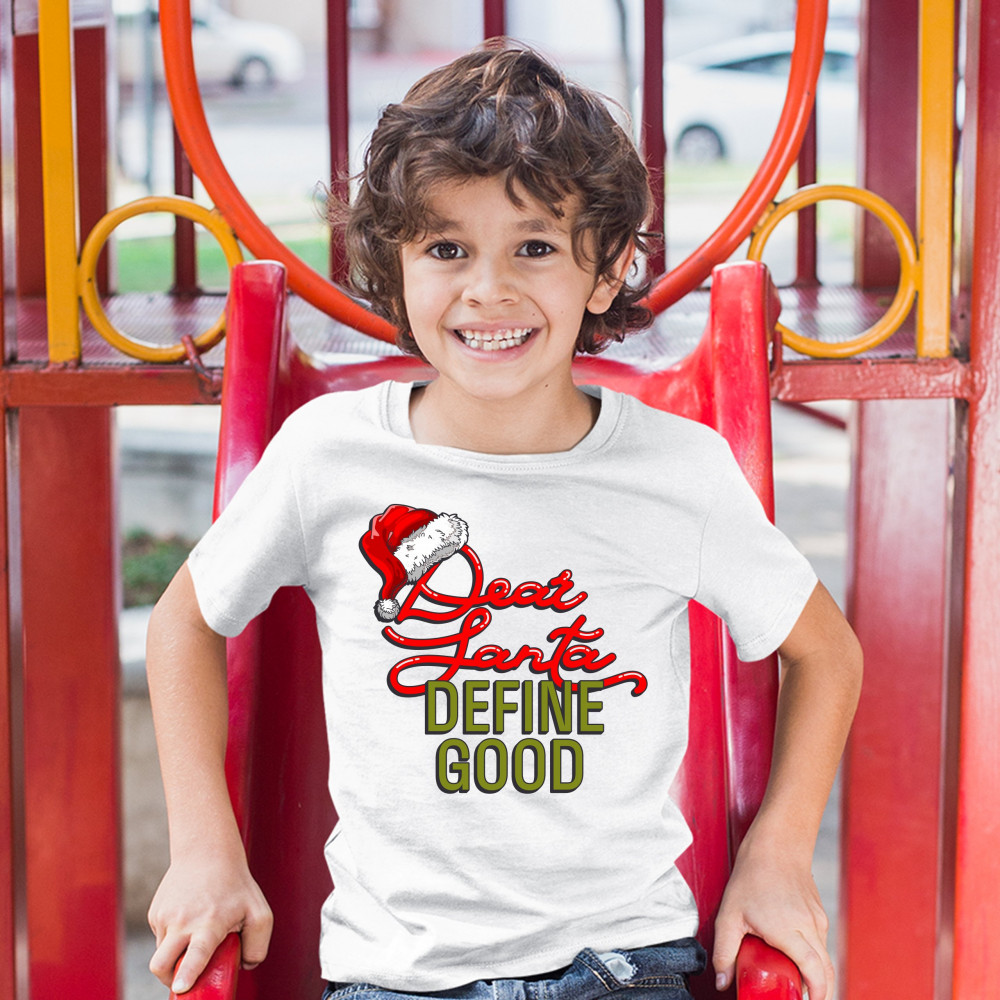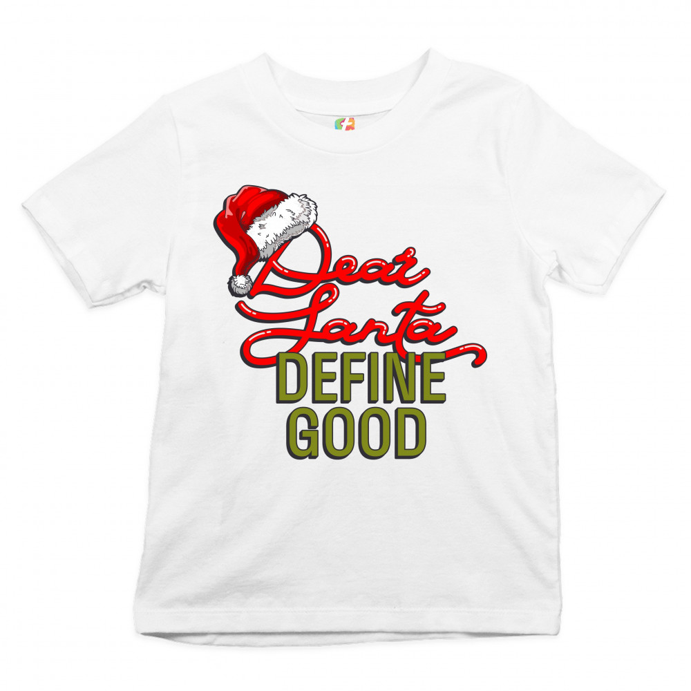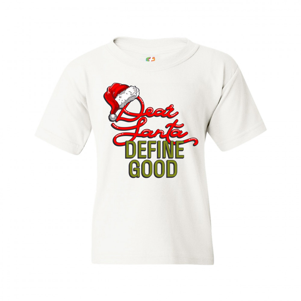 DEAR SANTA DEFINE GOOD youth t-shirt merry christmas naughty or nice kids white