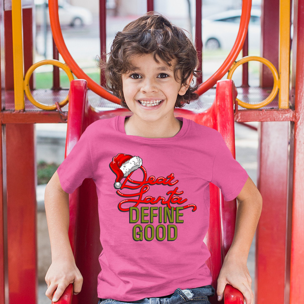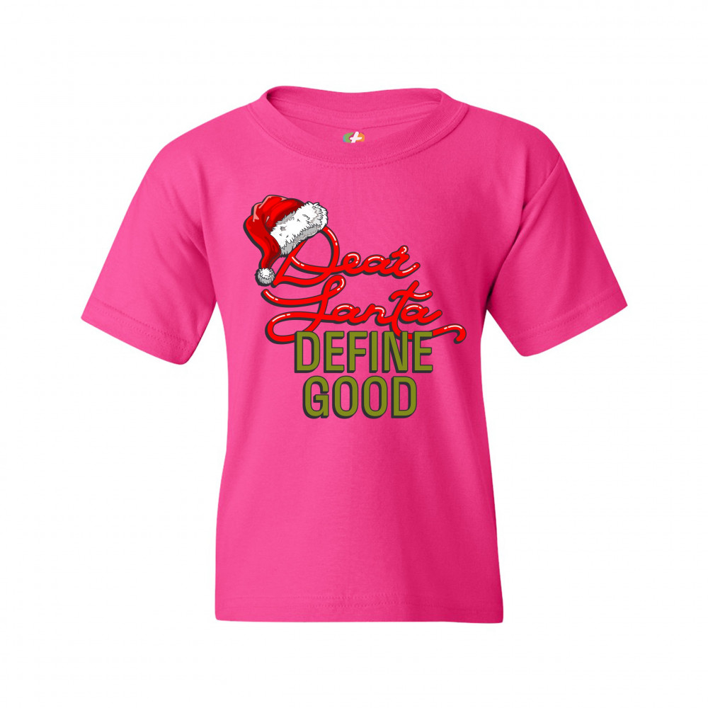 DEAR SANTA DEFINE GOOD youth t-shirt merry christmas naughty or nice kids pink