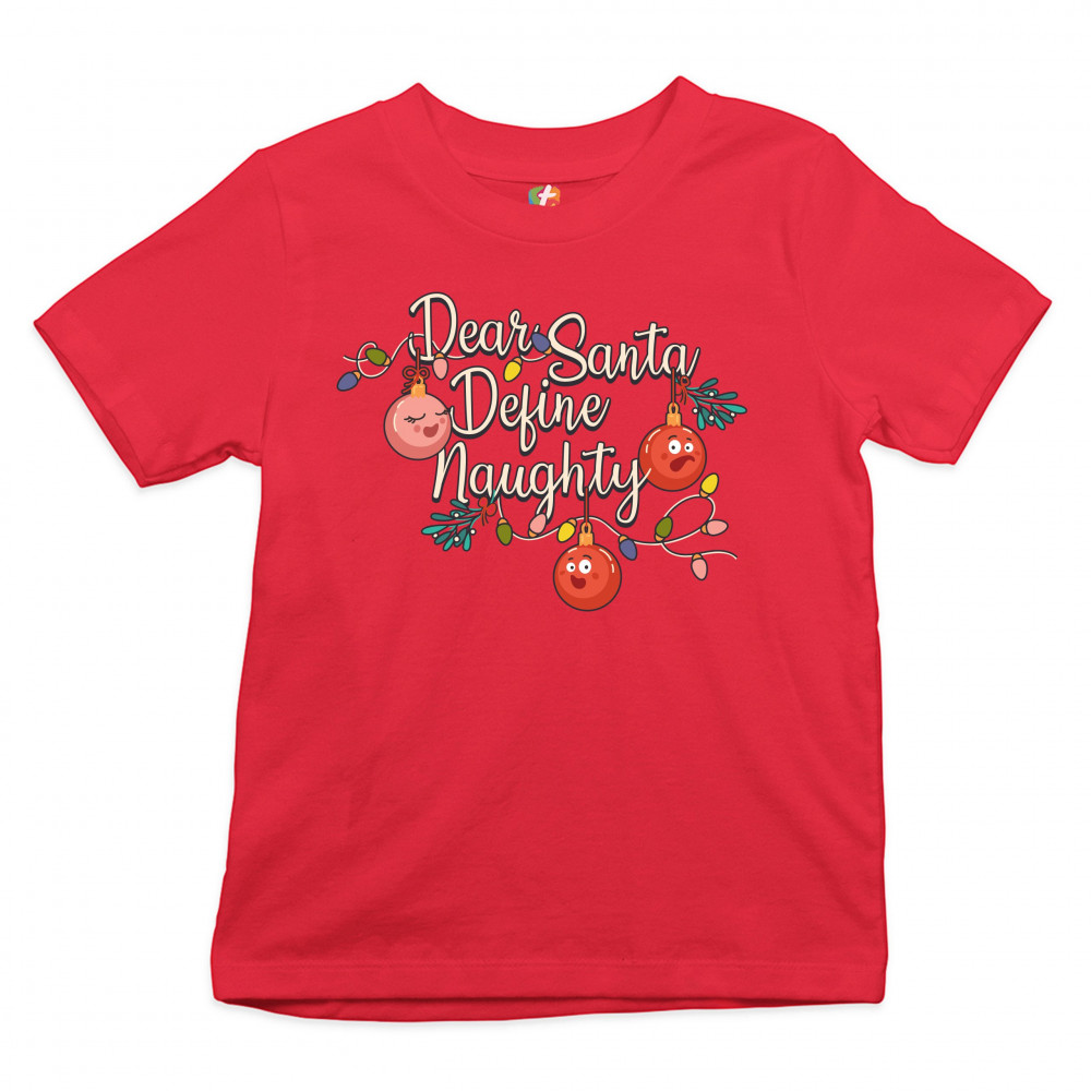 DEAR SANTA DEFINE NAUGHTY youth t-shirt merry christmas naughty or nice kids red