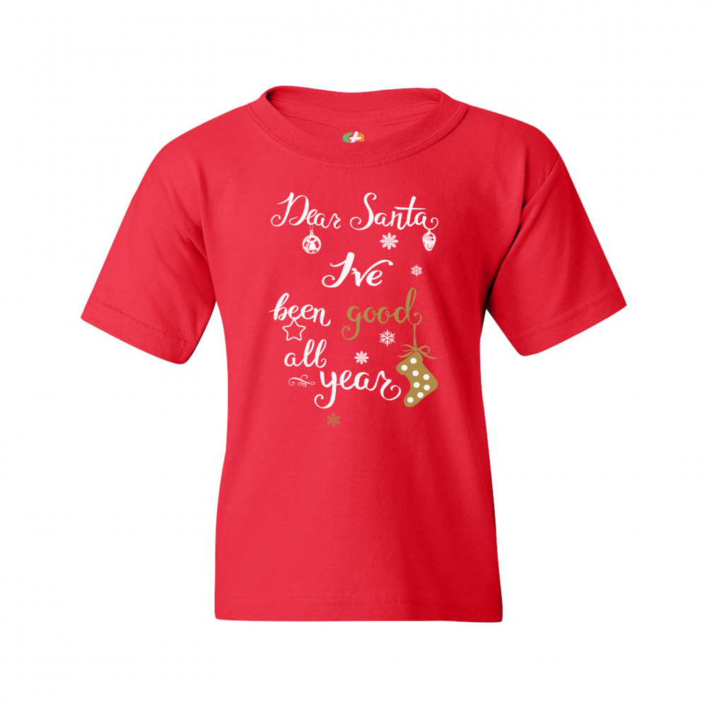 DEAR SANTA I'VE BEEN GOOD ALL YEAR youth t-shirt funny christmas xmas kids red