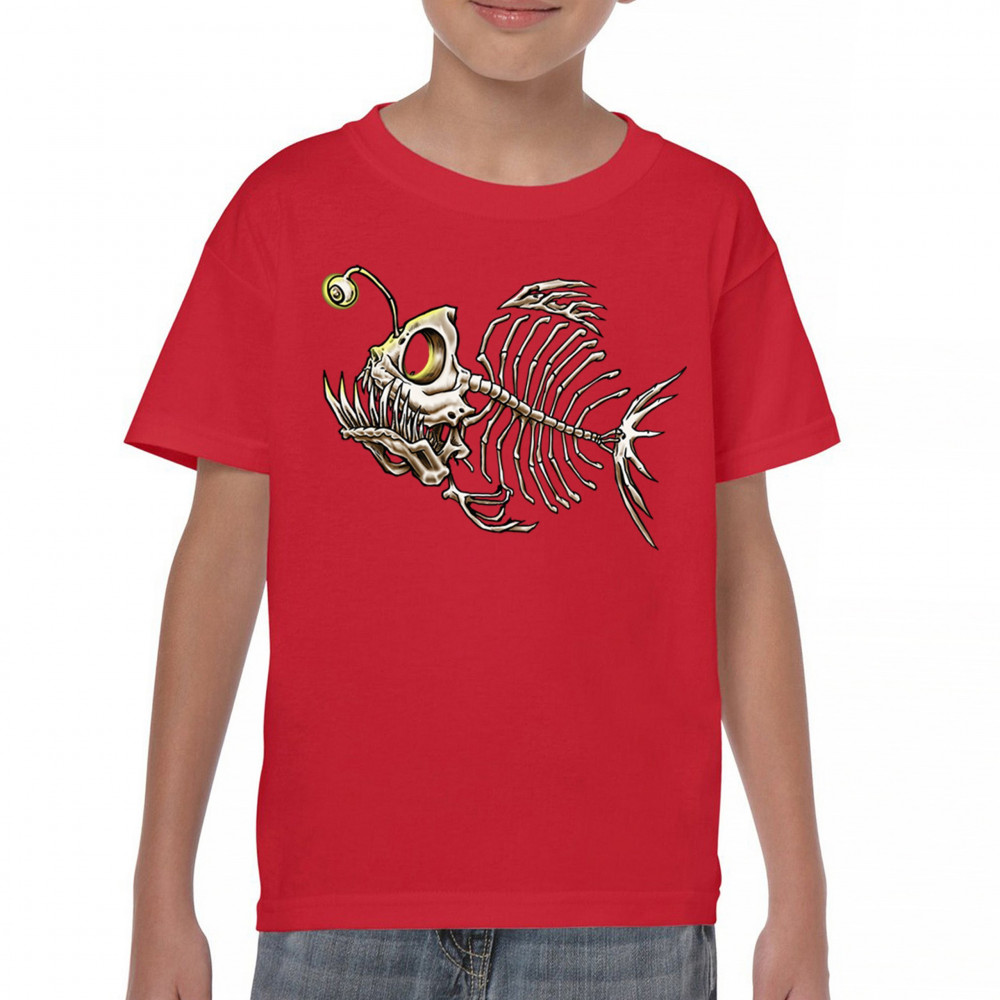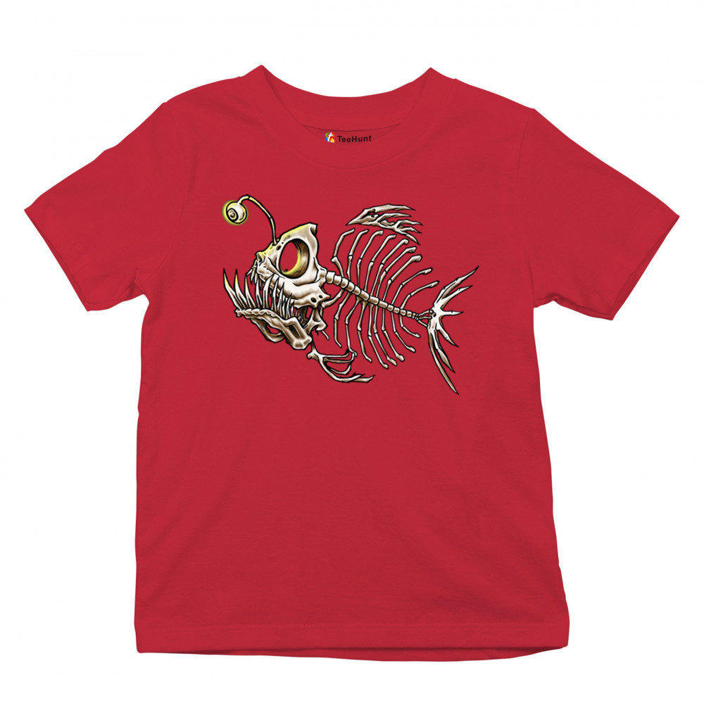 Creepy angler fish skeleton with glowing eye and horror bones. Perfect for sea lovers, divers, Halloween, and marine biology fans.