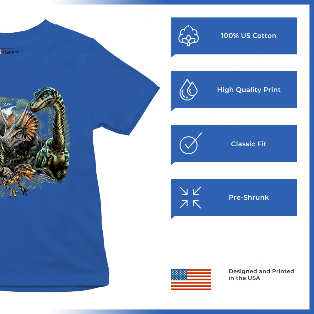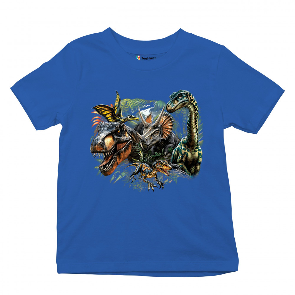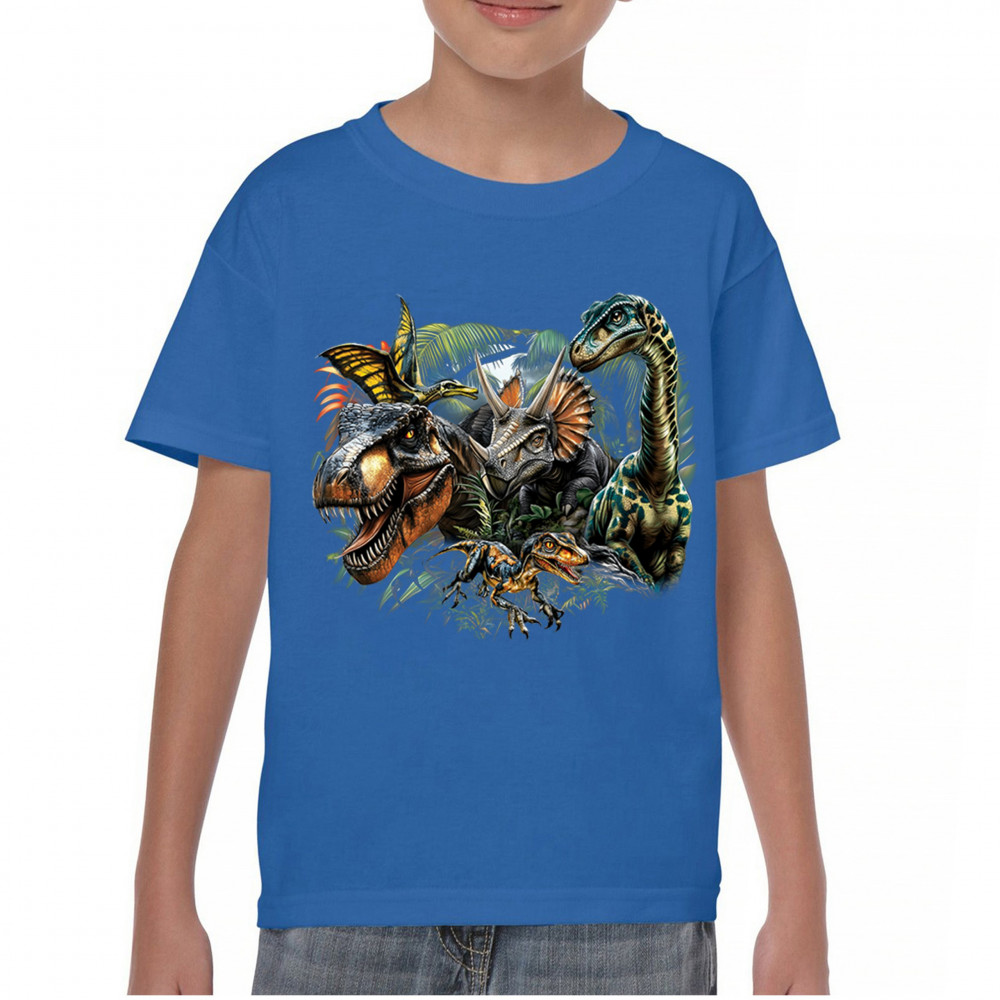 Get prehistoric with this electrifying design featuring a full dino squad in vibrant jungle detail. Includes t rex, triceratops, raptor, brachiosaurus, and pteranodon, all surrounded by tropical foliage. A perfect pick for dinosaur fans, fossil hunters, Jurassic birthday parties, or anyone who loves bold, wild, nature-themed art.