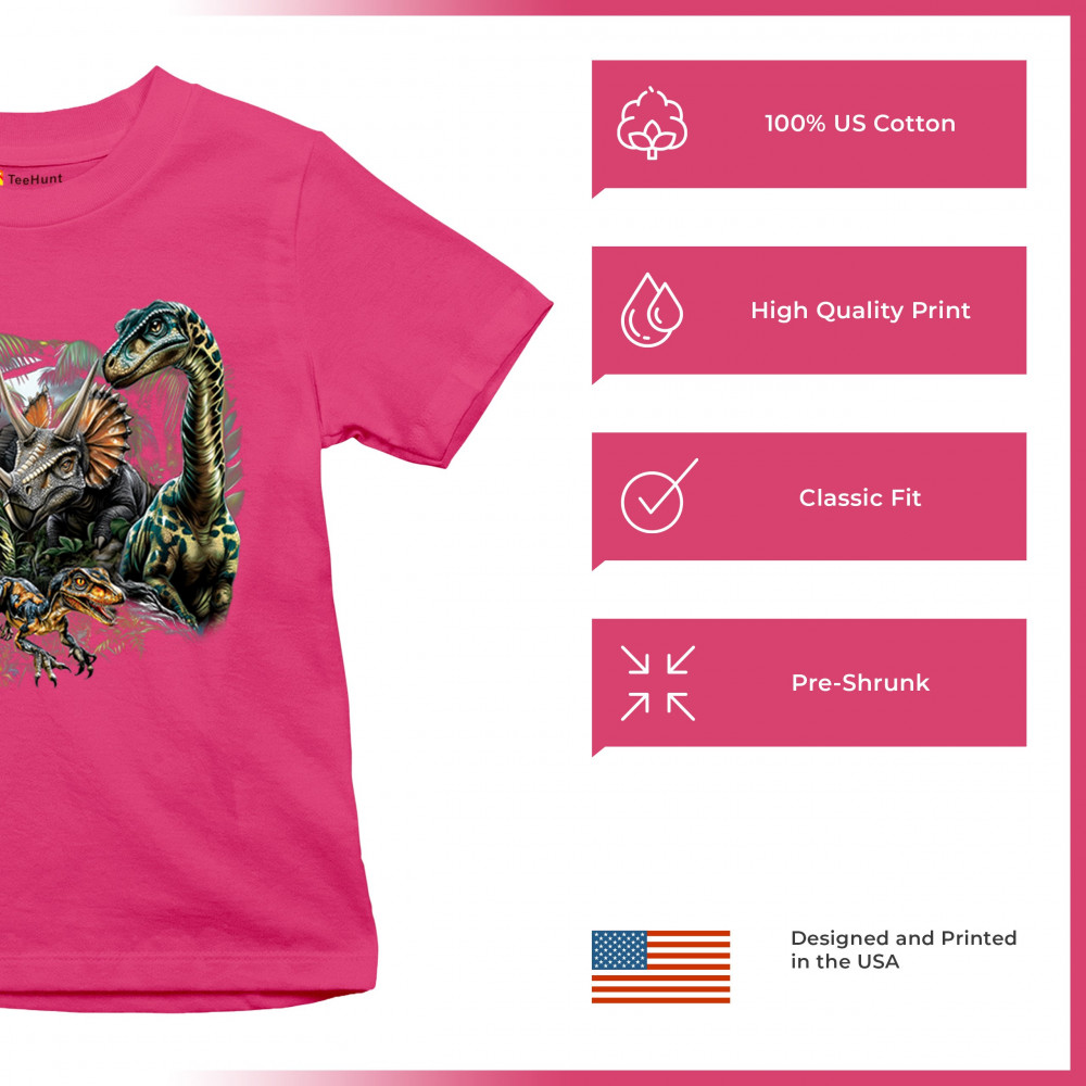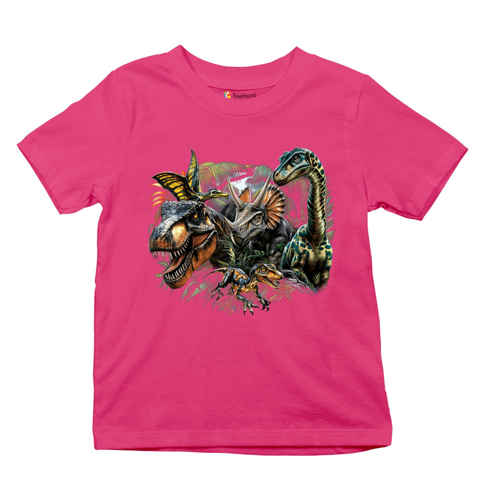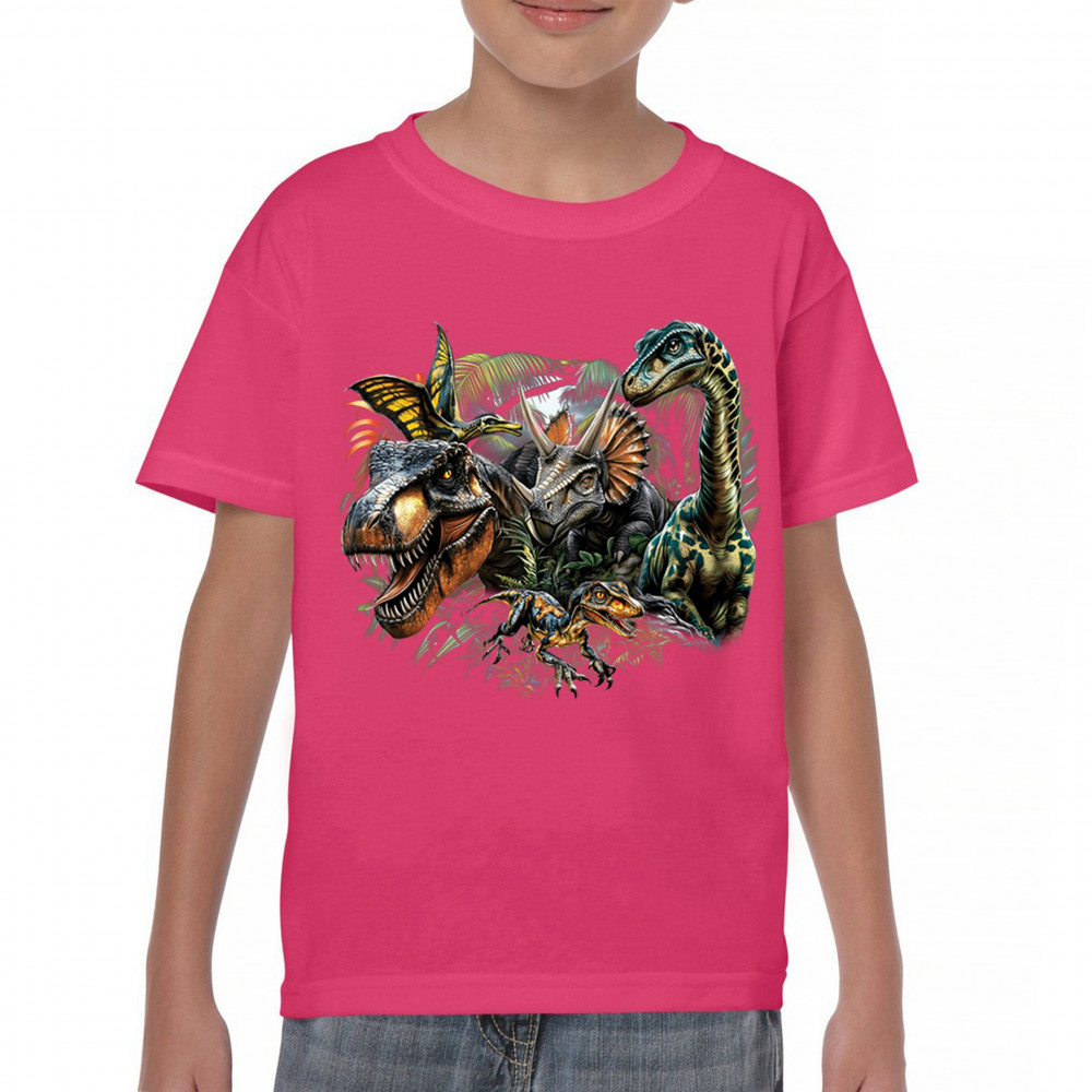 Get prehistoric with this electrifying design featuring a full dino squad in vibrant jungle detail. Includes t rex, triceratops, raptor, brachiosaurus, and pteranodon, all surrounded by tropical foliage. A perfect pick for dinosaur fans, fossil hunters, Jurassic birthday parties, or anyone who loves bold, wild, nature-themed art.