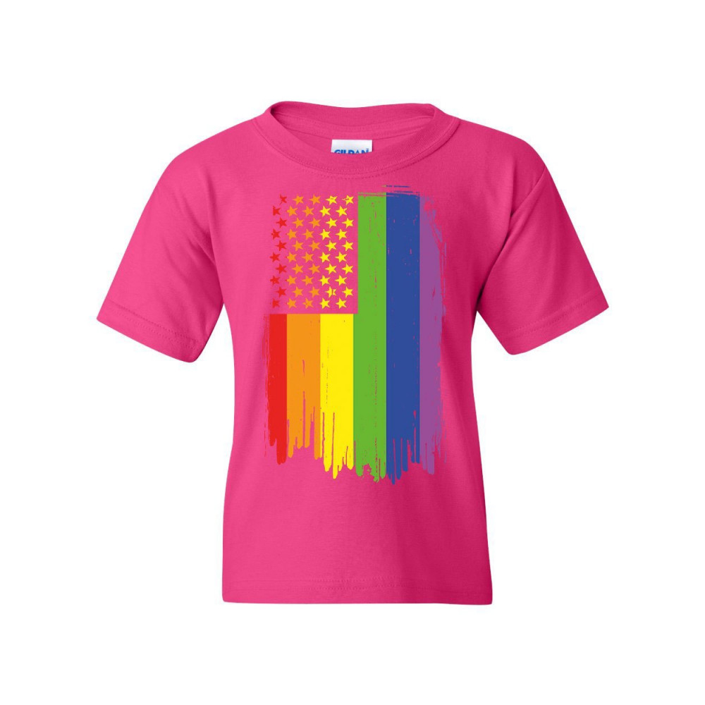 DISTRESSED GAY PRIDE RAINBOW FLAG youth t-shirt lgbtq love wins pink