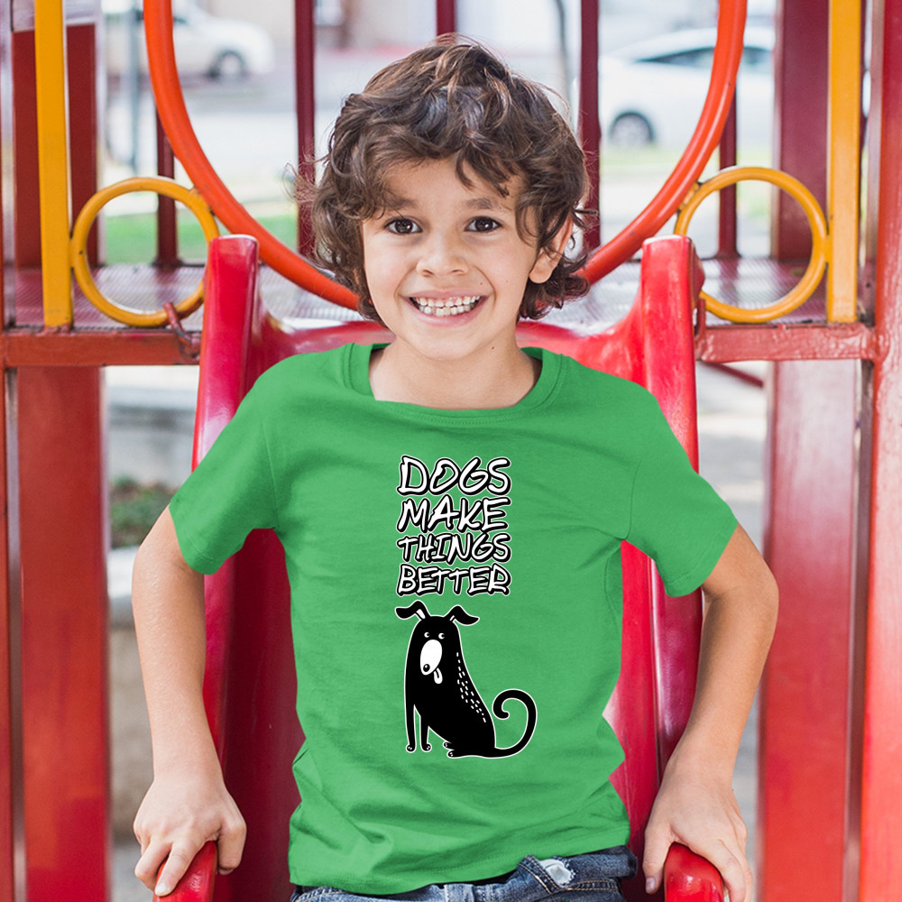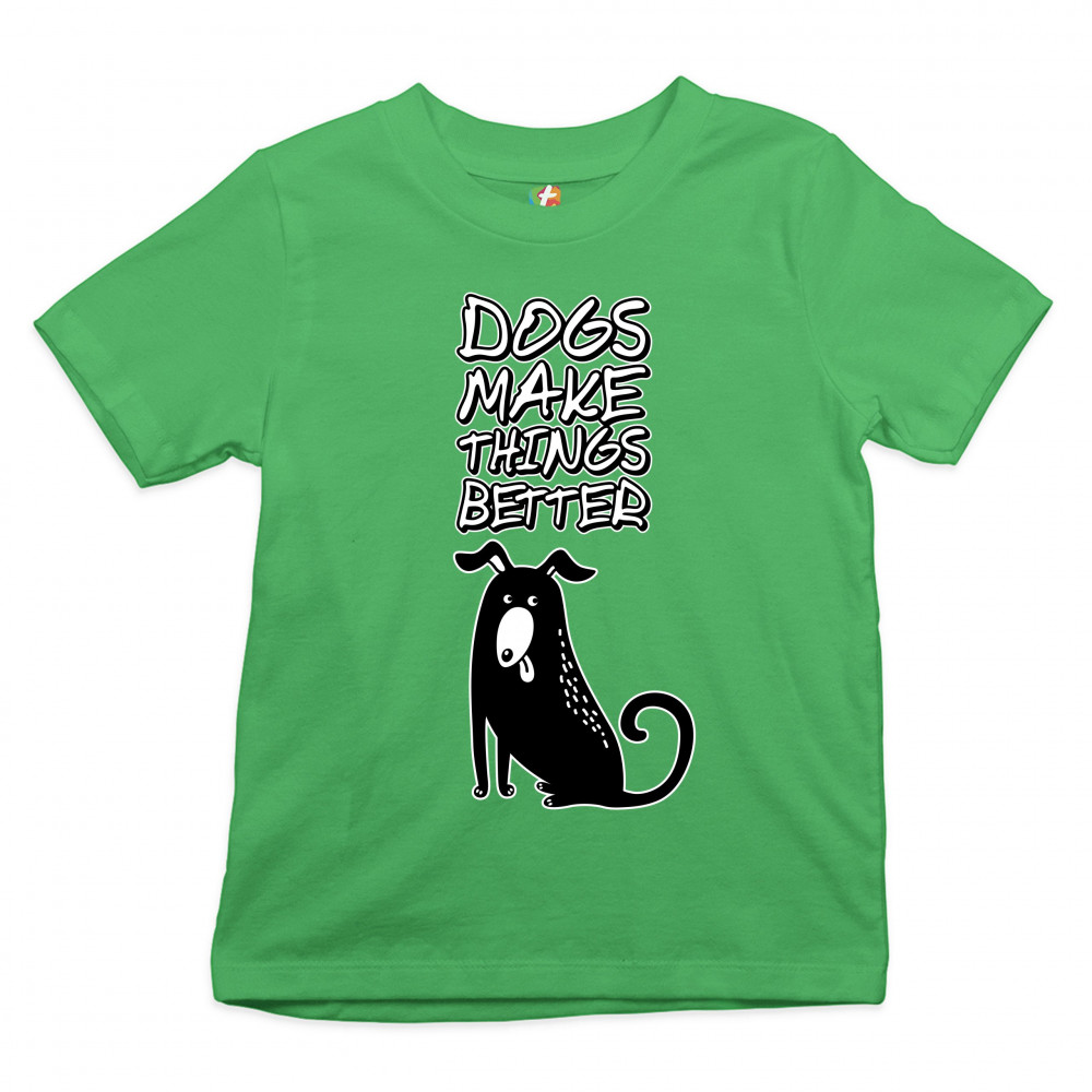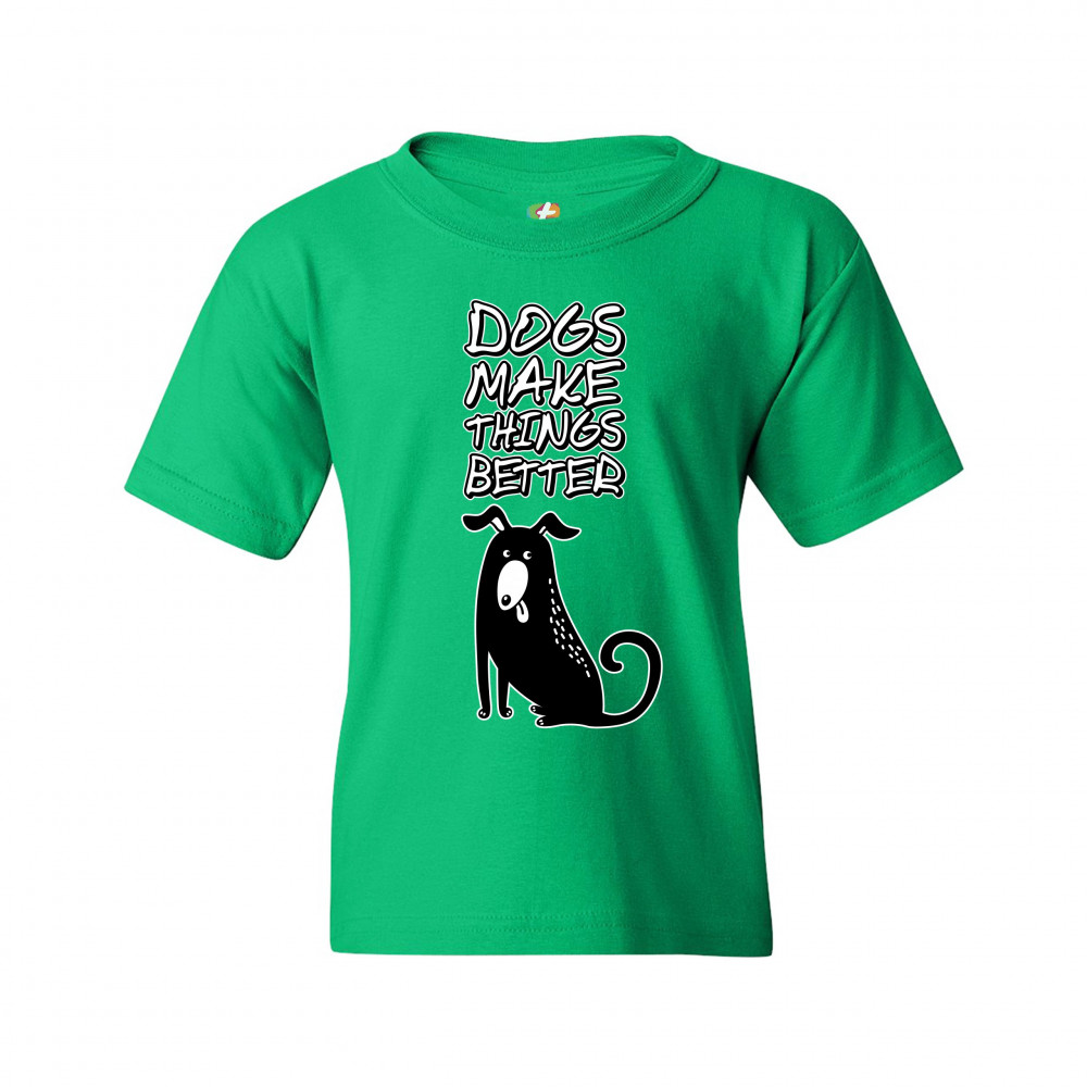 DOGS MAKE THINGS BETTER youth t-shirt animal pet owner i love my dog kids green