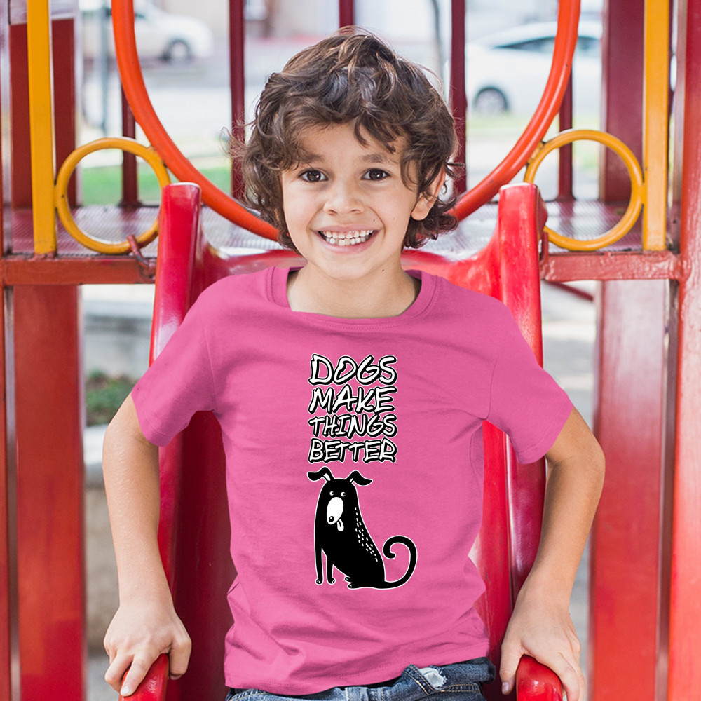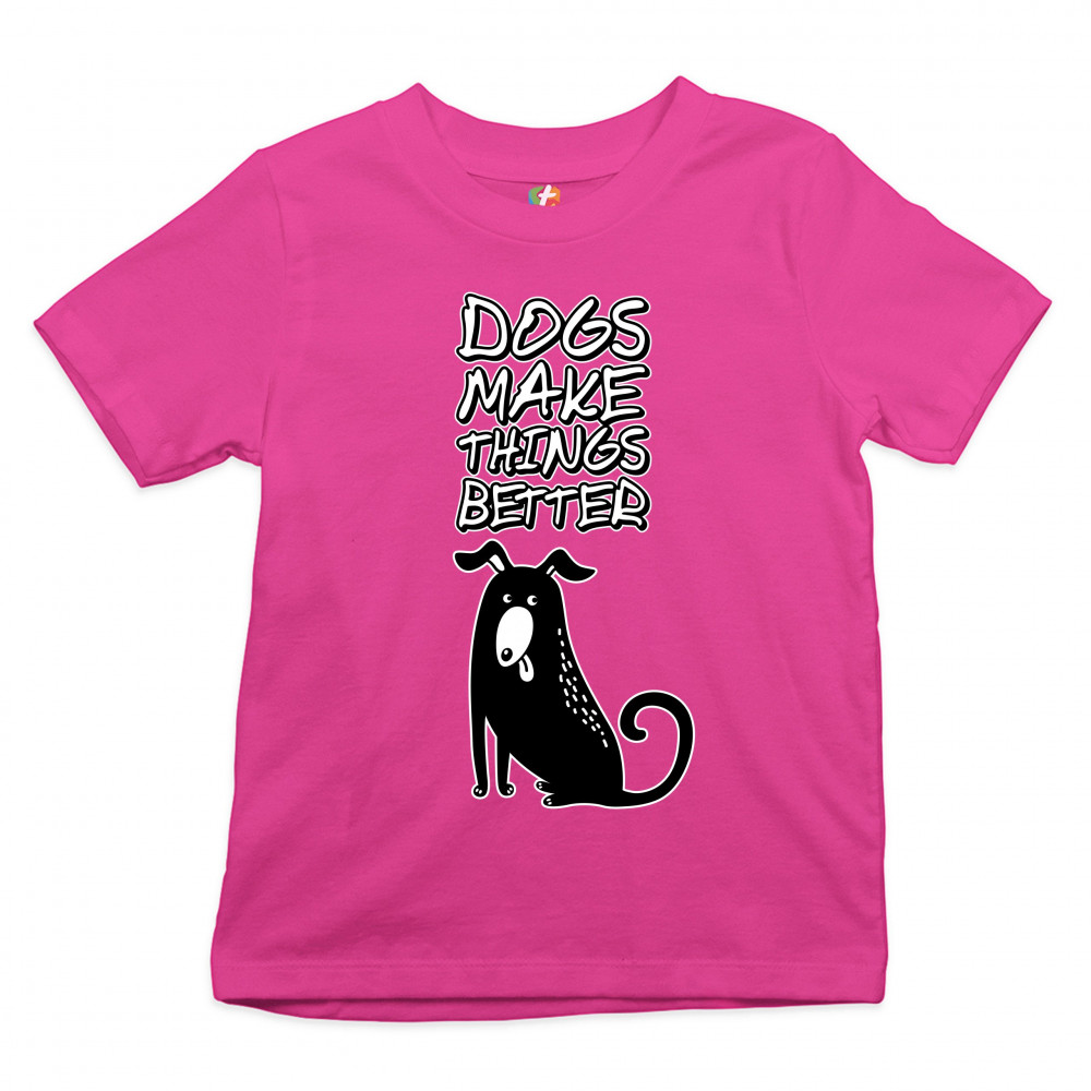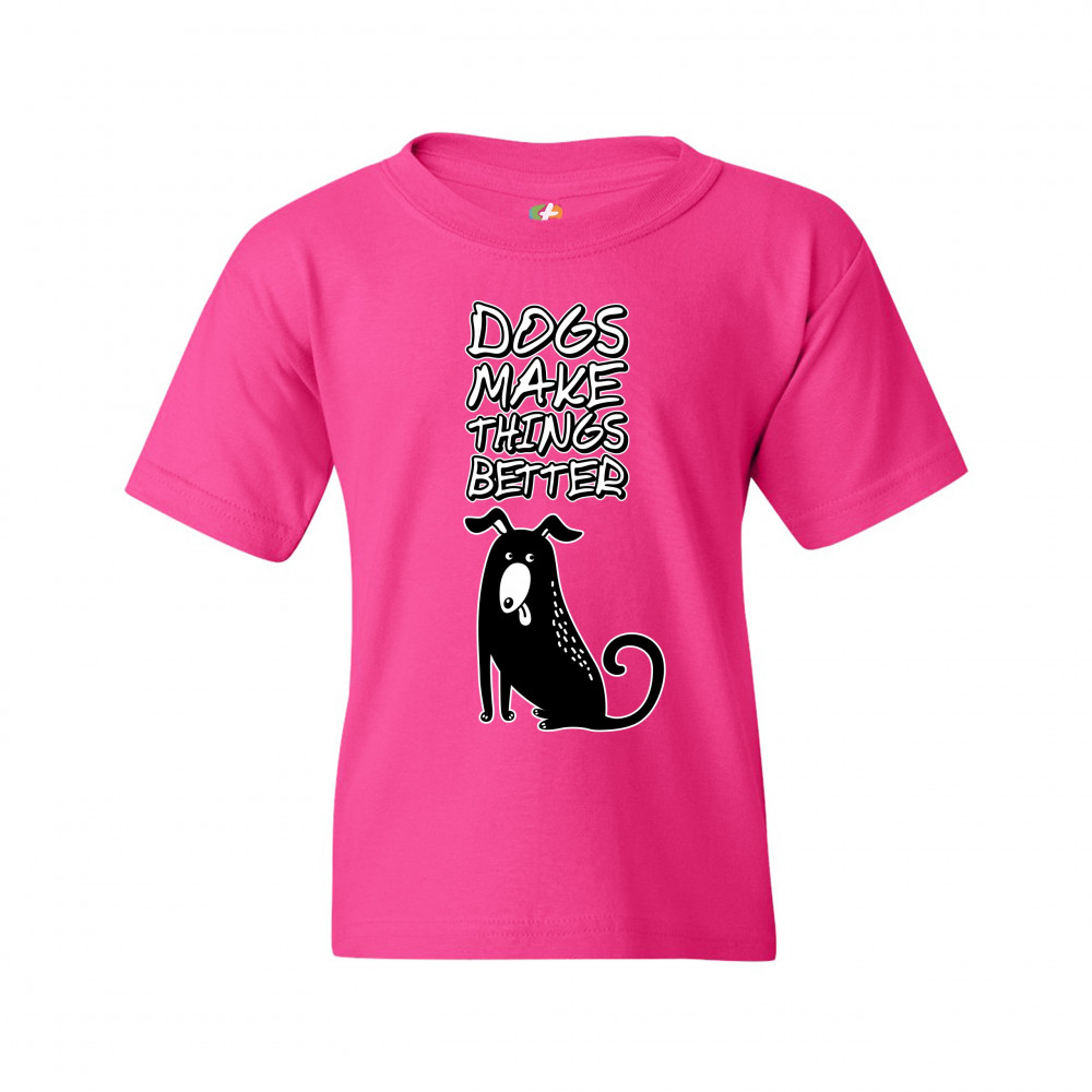 DOGS MAKE THINGS BETTER youth t-shirt animal pet owner i love my dog kids pink