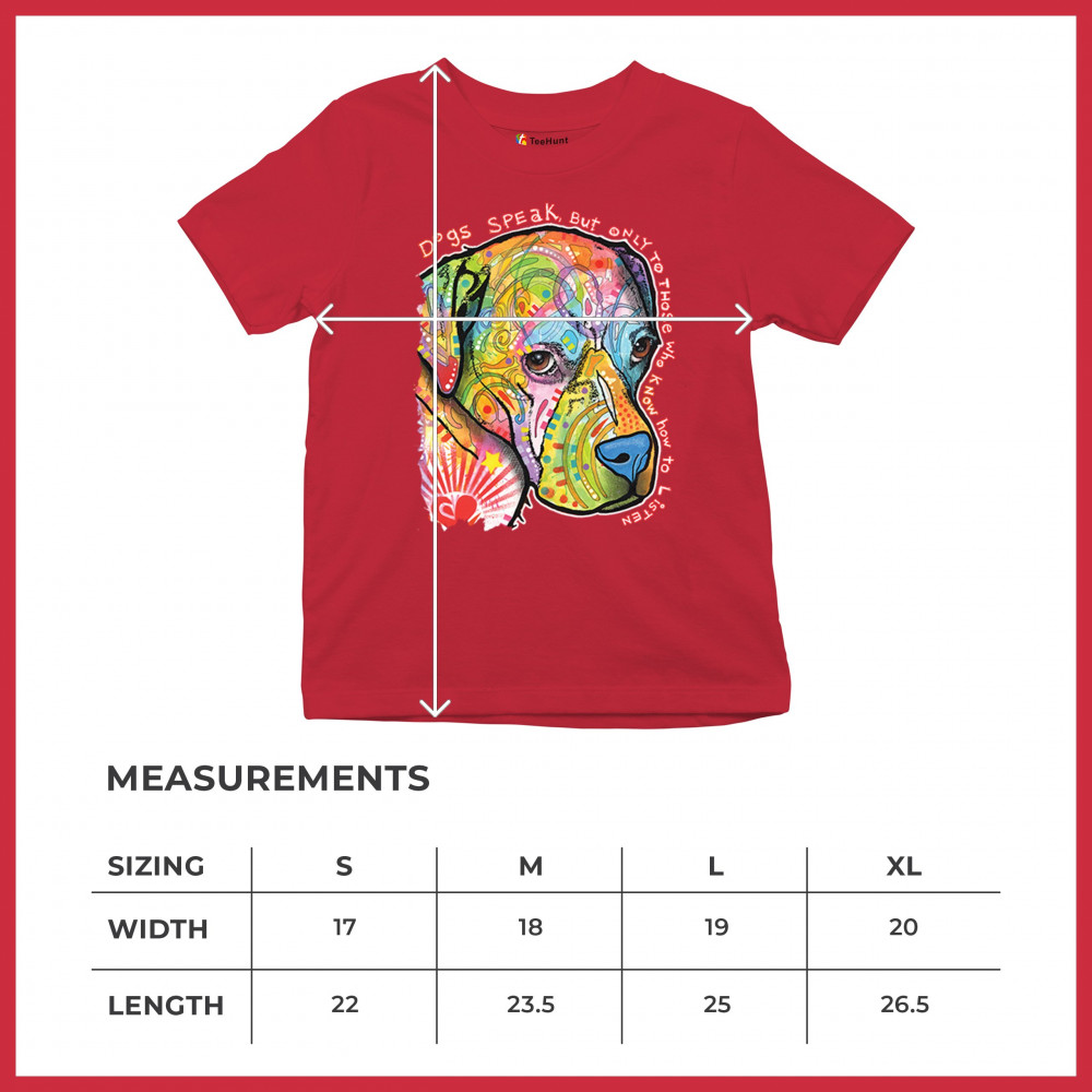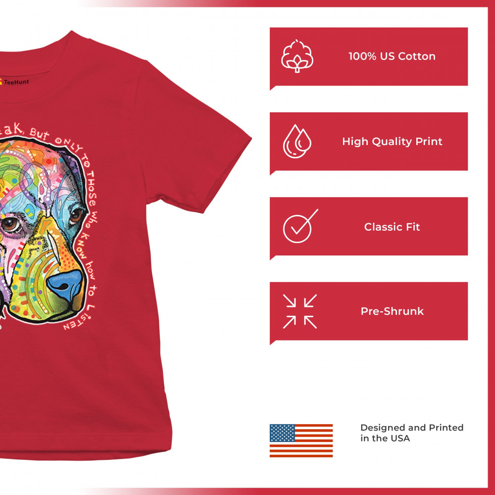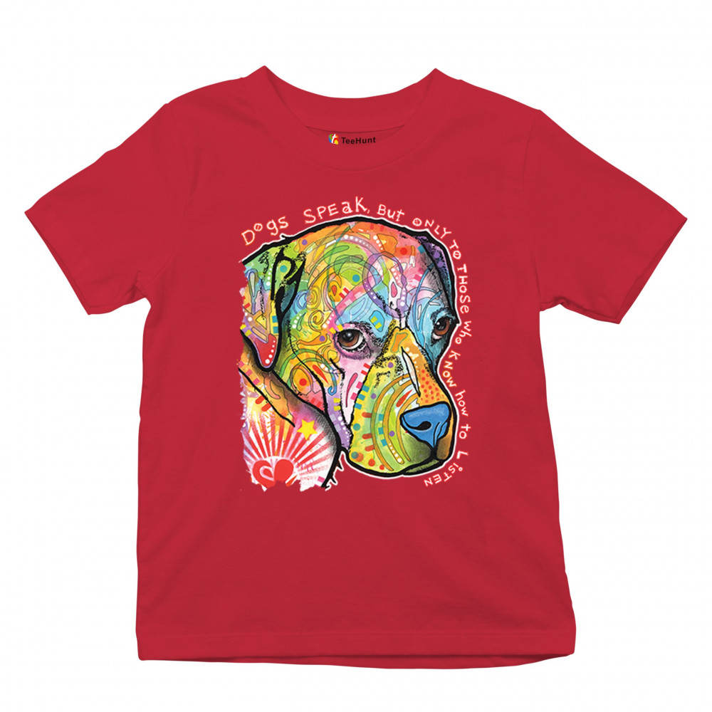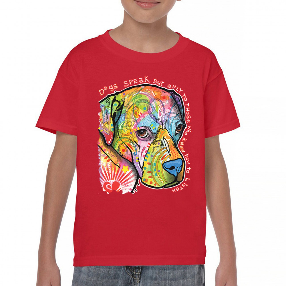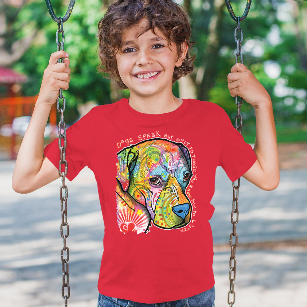 DOGS SPEAK TO THOSE WHO LISTEN youth t-shirt dean russo neon pet puppy kids red
