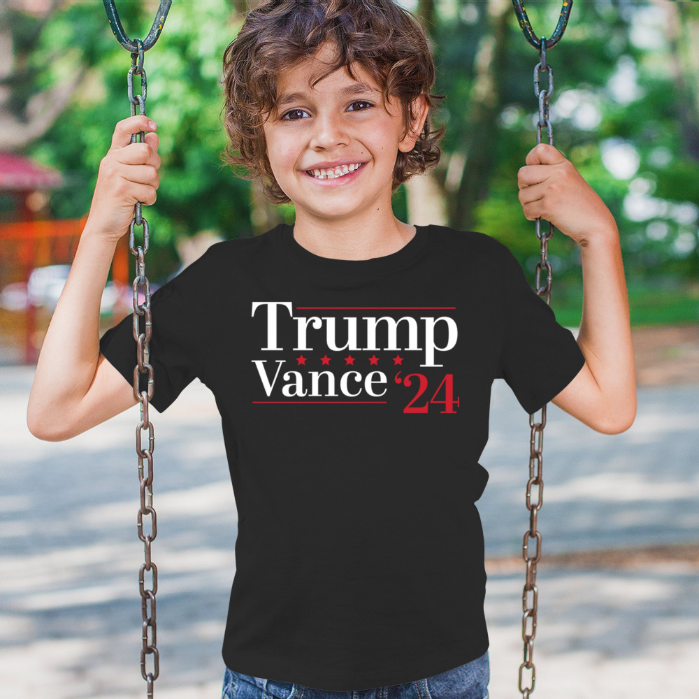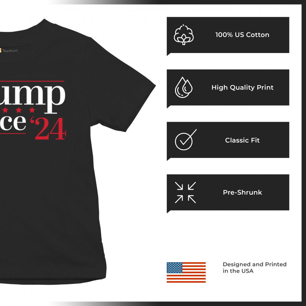Support Trump-Vance 2024 with this bold design featuring the "Make America Great Again" slogan and the American flag. Perfect for rallies and conservative events.