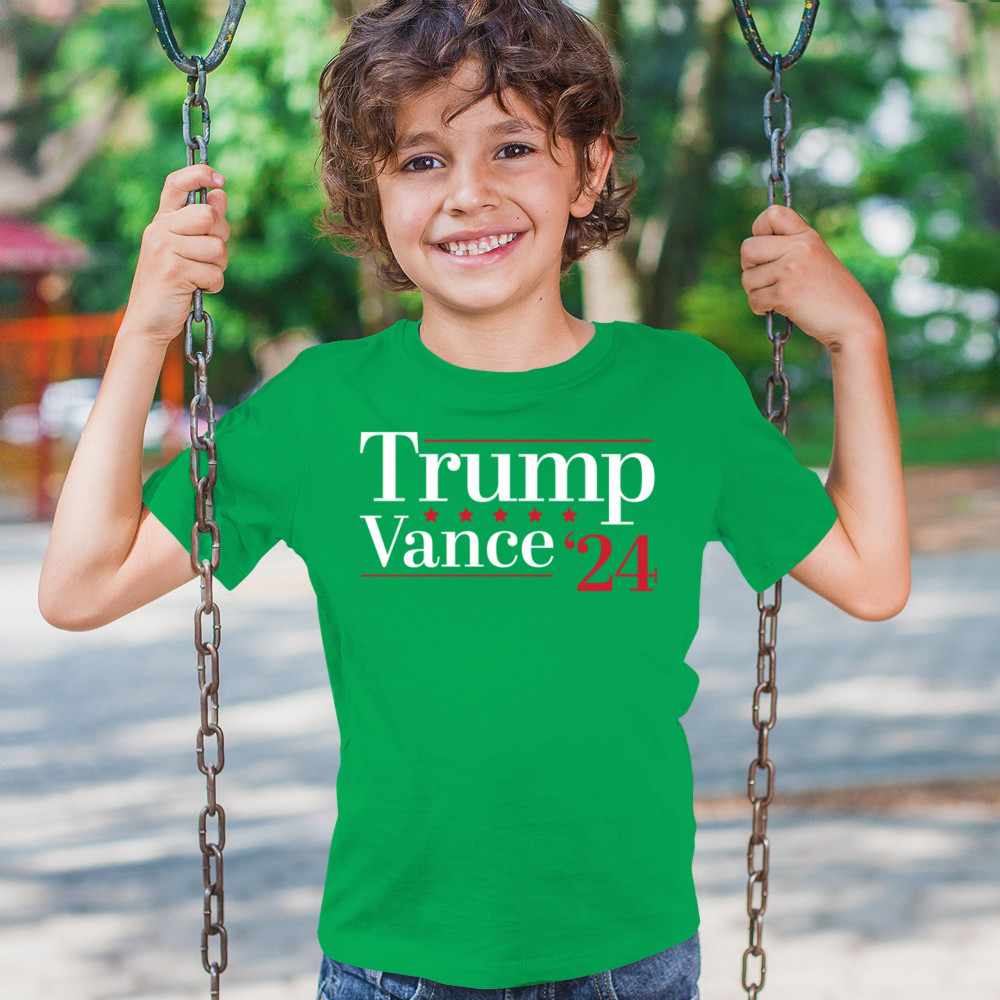 Support Trump-Vance 2024 with this bold design featuring the "Make America Great Again" slogan and the American flag. Perfect for rallies and conservative events.