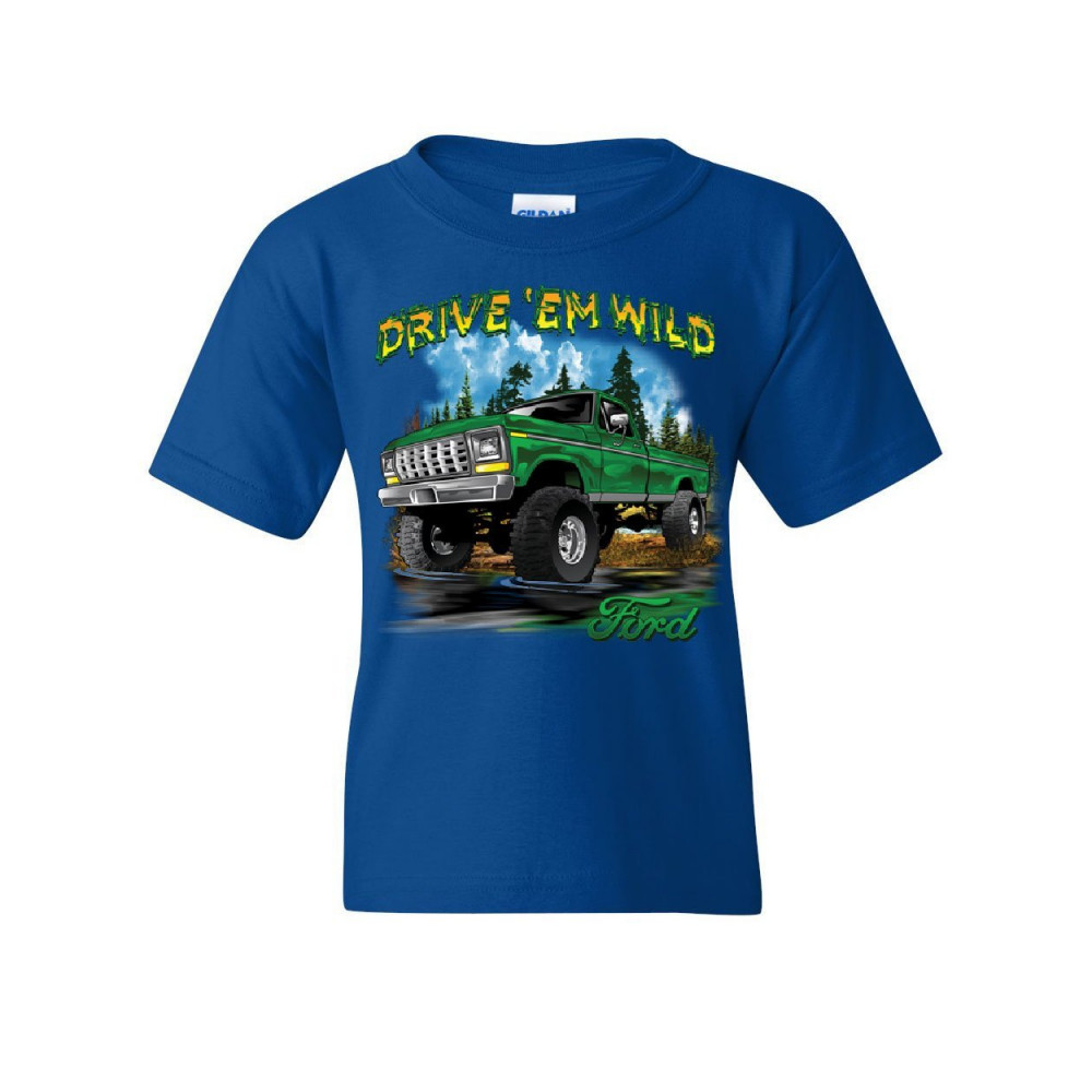 DRIVE 'EM WILD youth t-shirt ford pickup trucks f-150 offroad mud ride kids tee royal blue