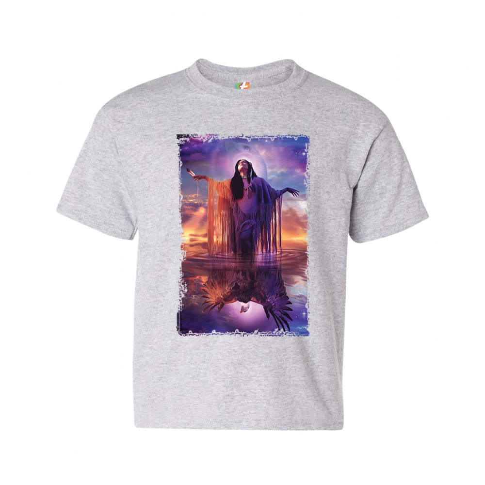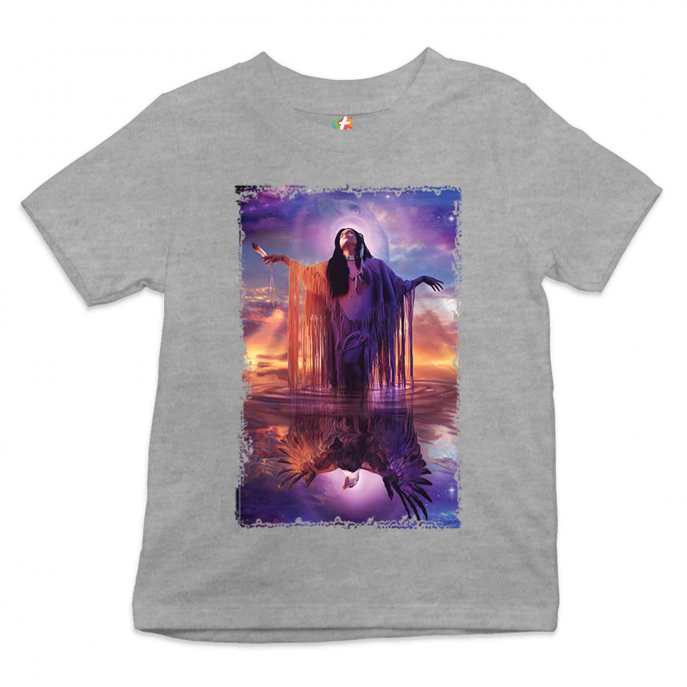 EAGLE SPIRIT youth t-shirt native american shaman indigenous heritage kids gray