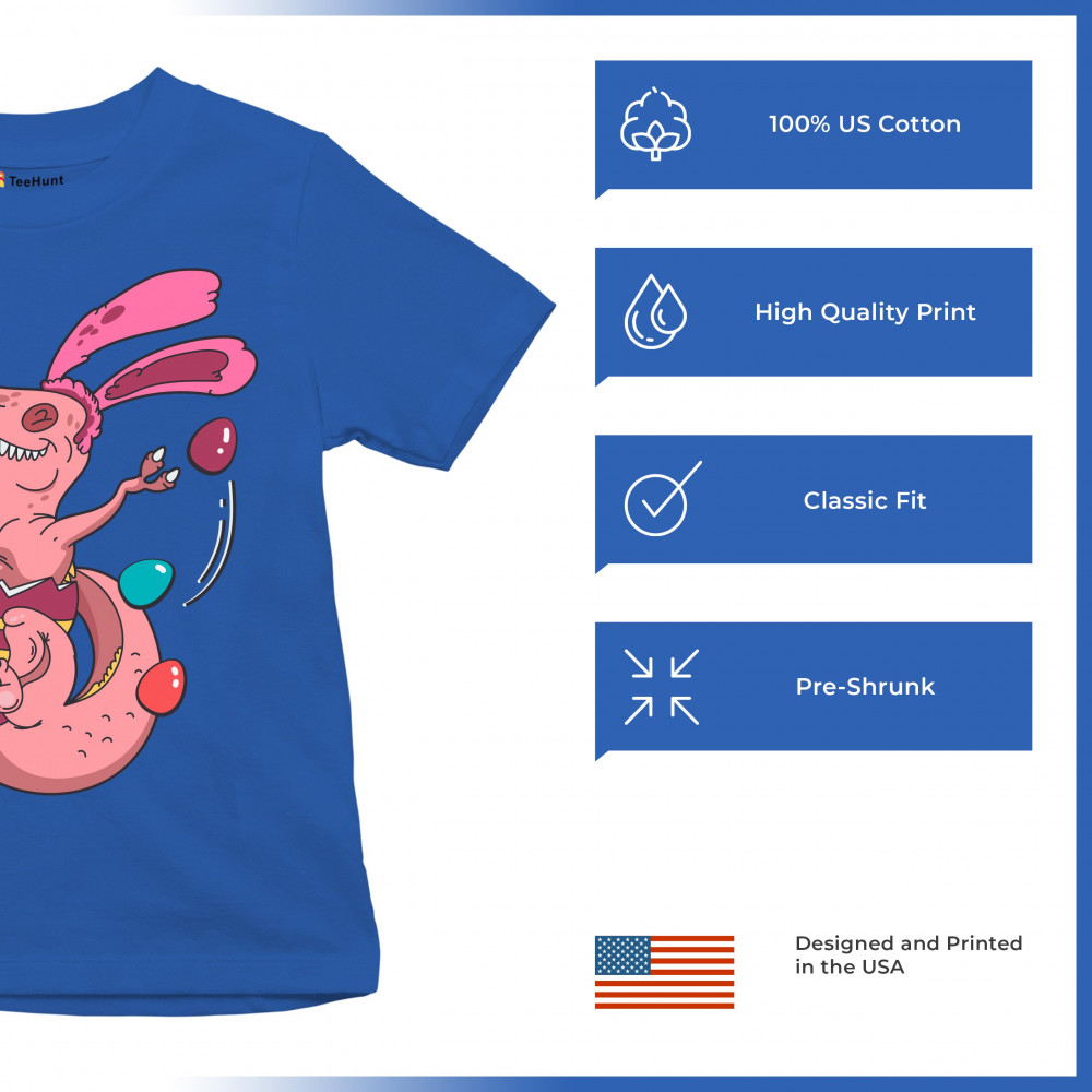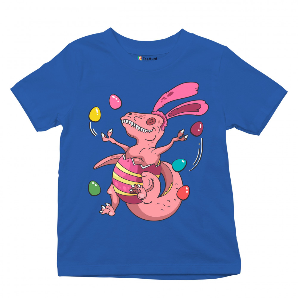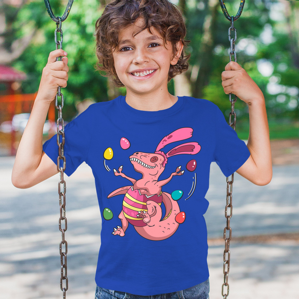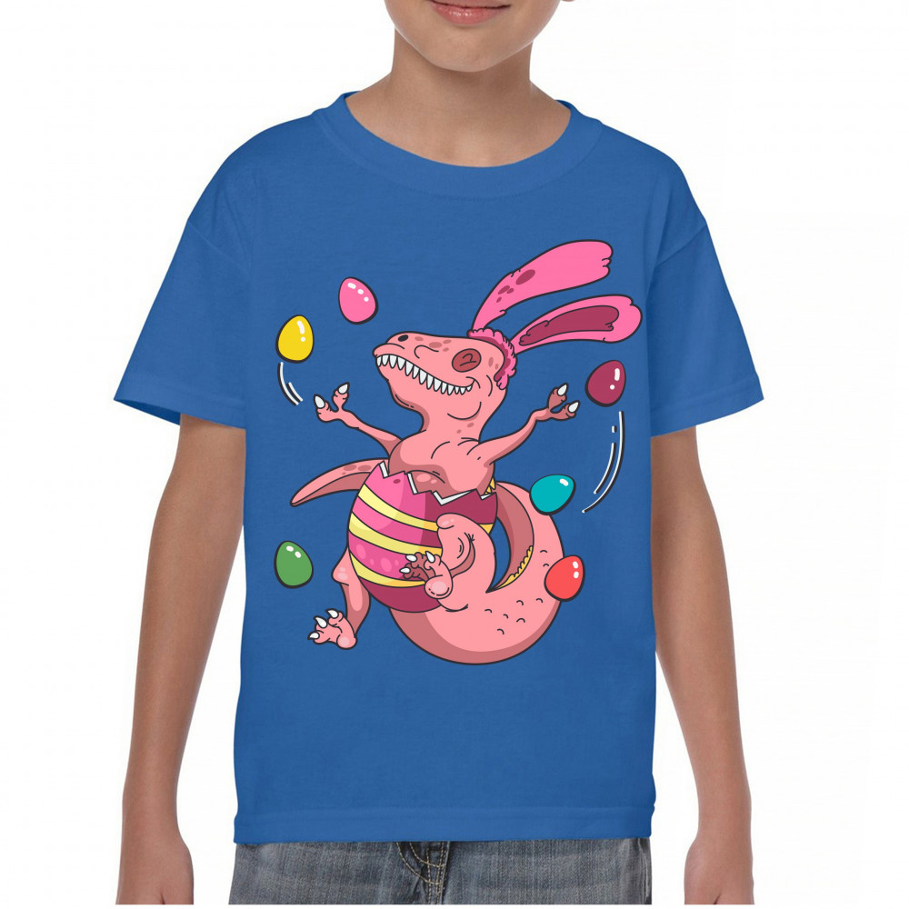 EASTER EGG T-REX youth t-shirt happy easter bunny dinosaur egg hunt kids royal blue