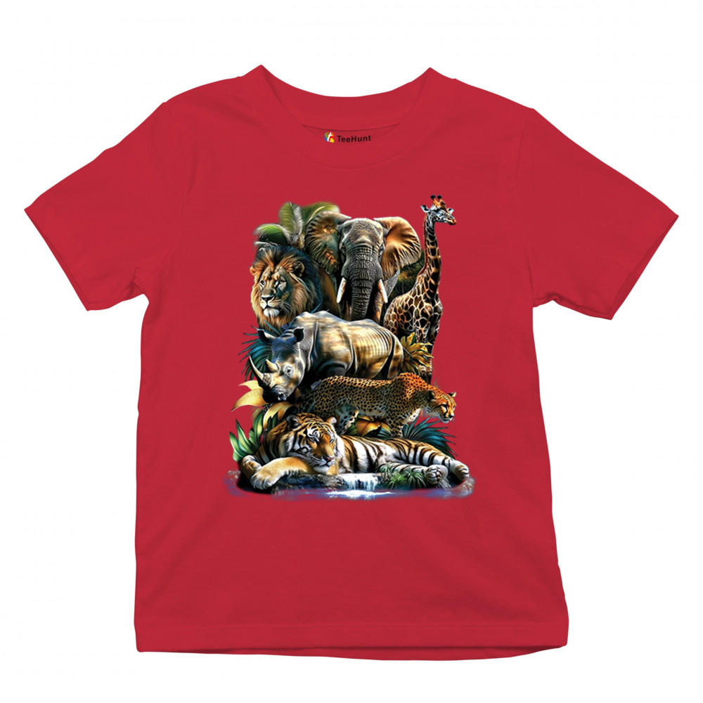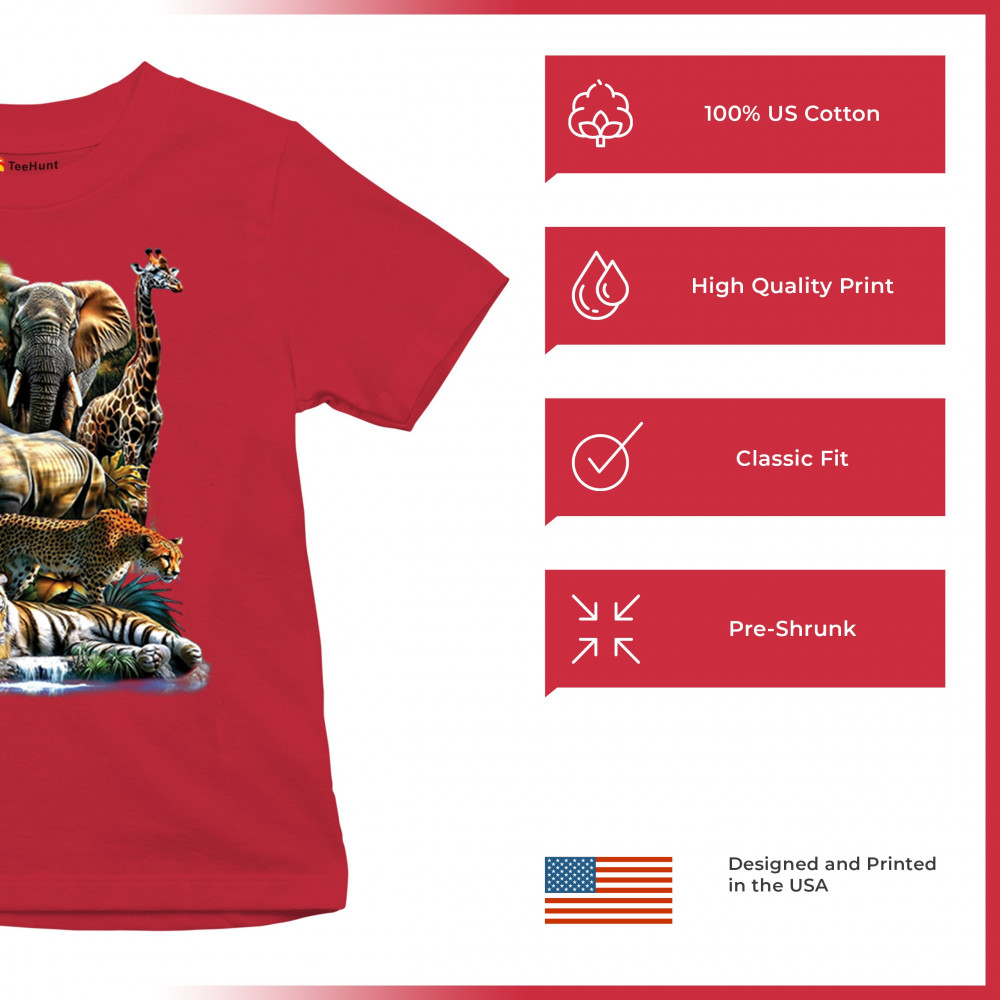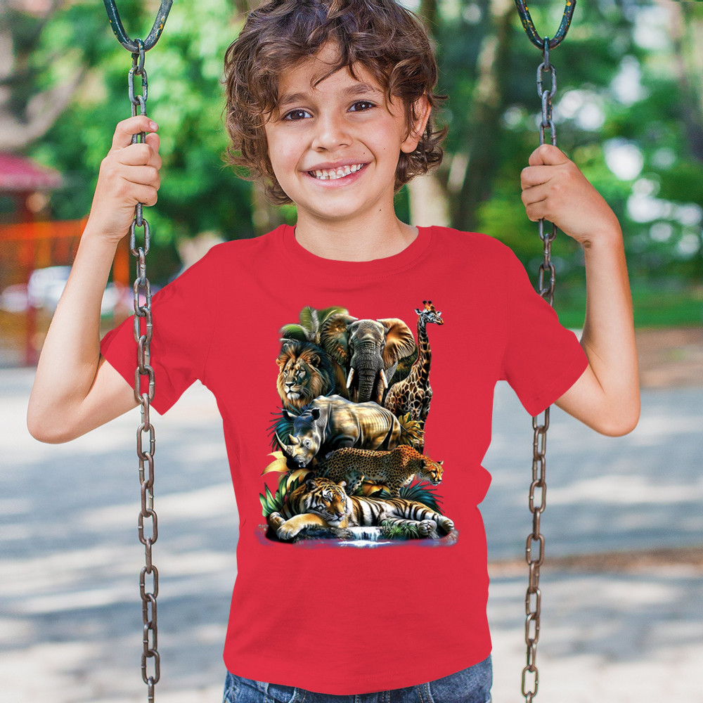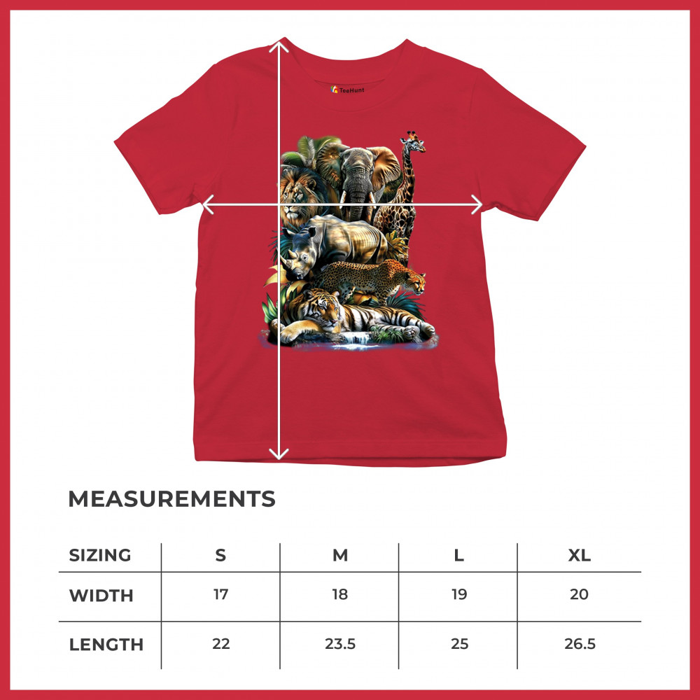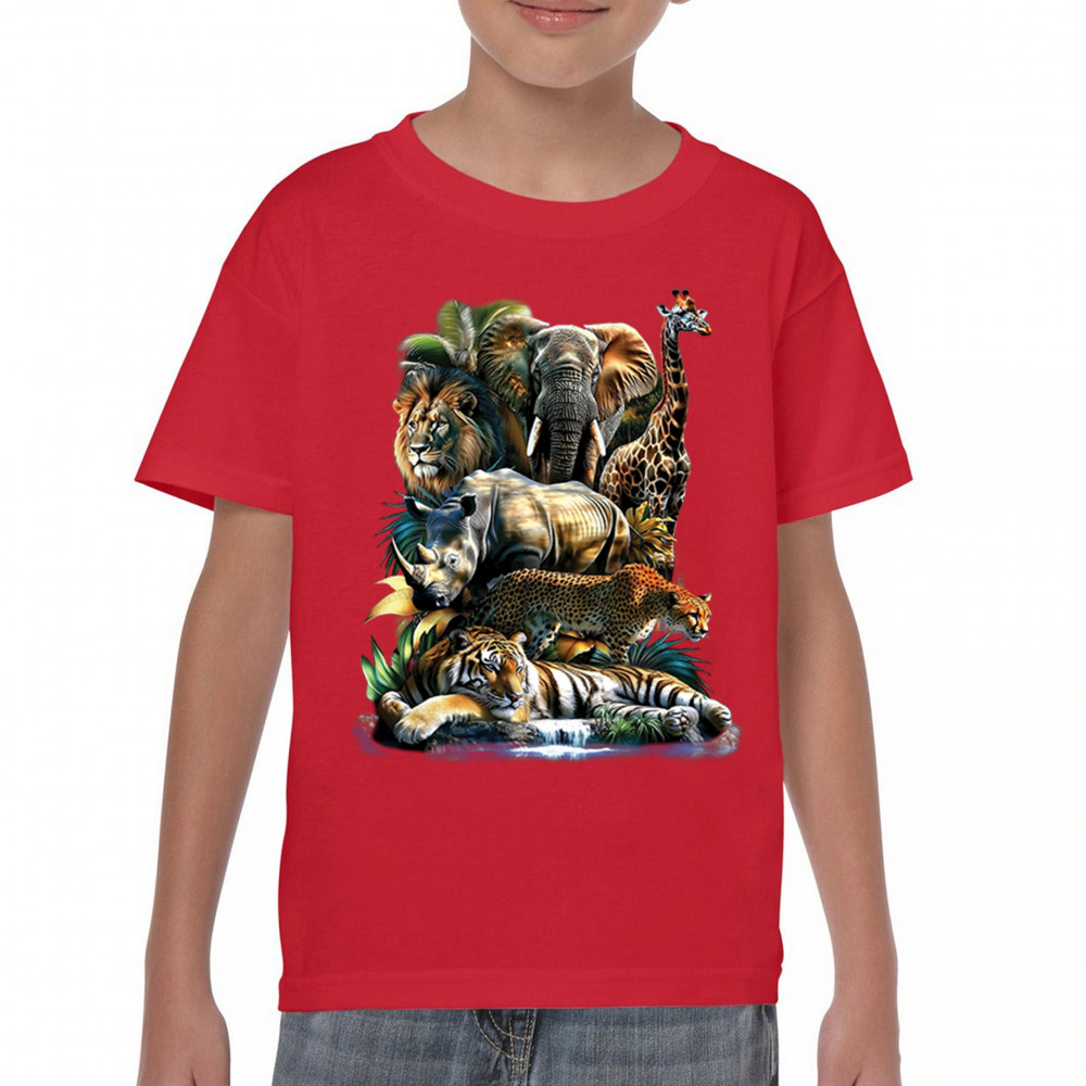 Wildlife design with lion, tiger, giraffe, rhino, cheetah, and elephant. Perfect for animal lovers and safari fans who embrace nature’s fierce spirit.