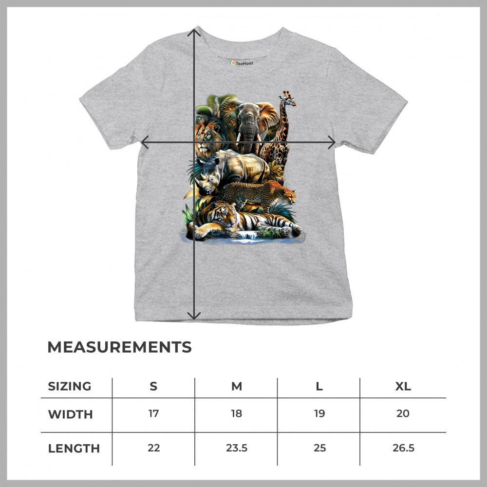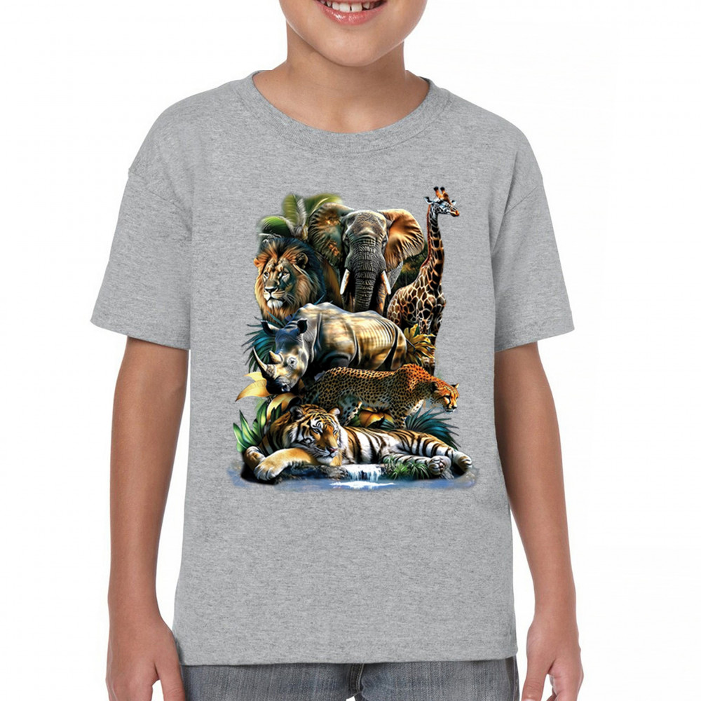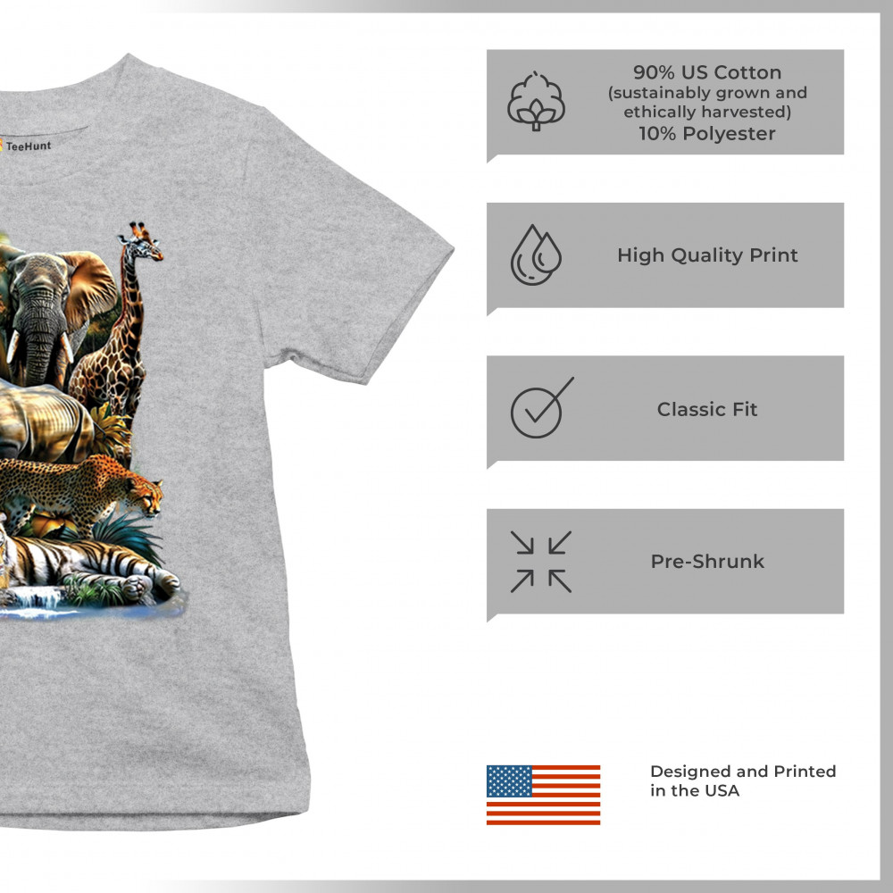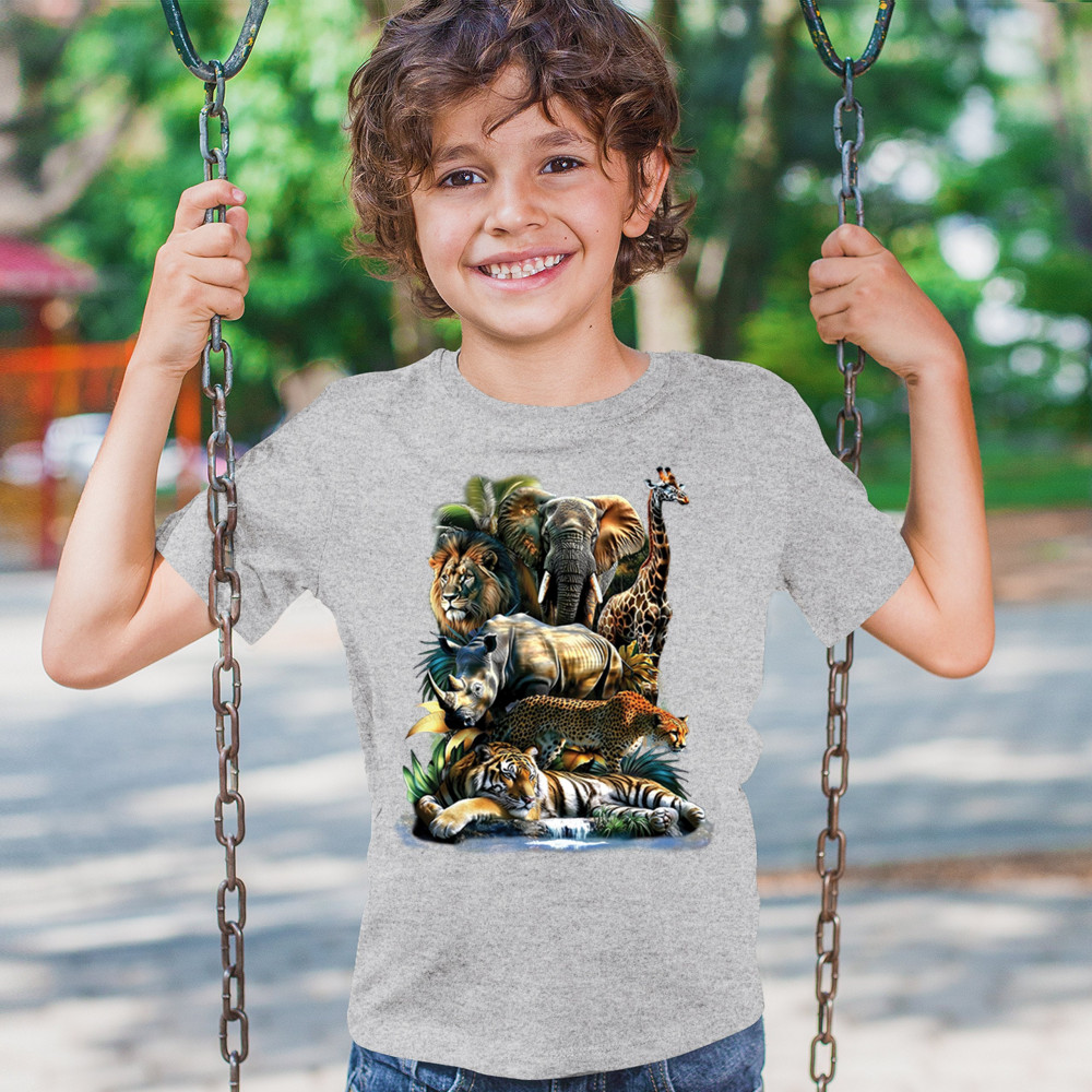 Wildlife design with lion, tiger, giraffe, rhino, cheetah, and elephant. Perfect for animal lovers and safari fans who embrace nature’s fierce spirit.