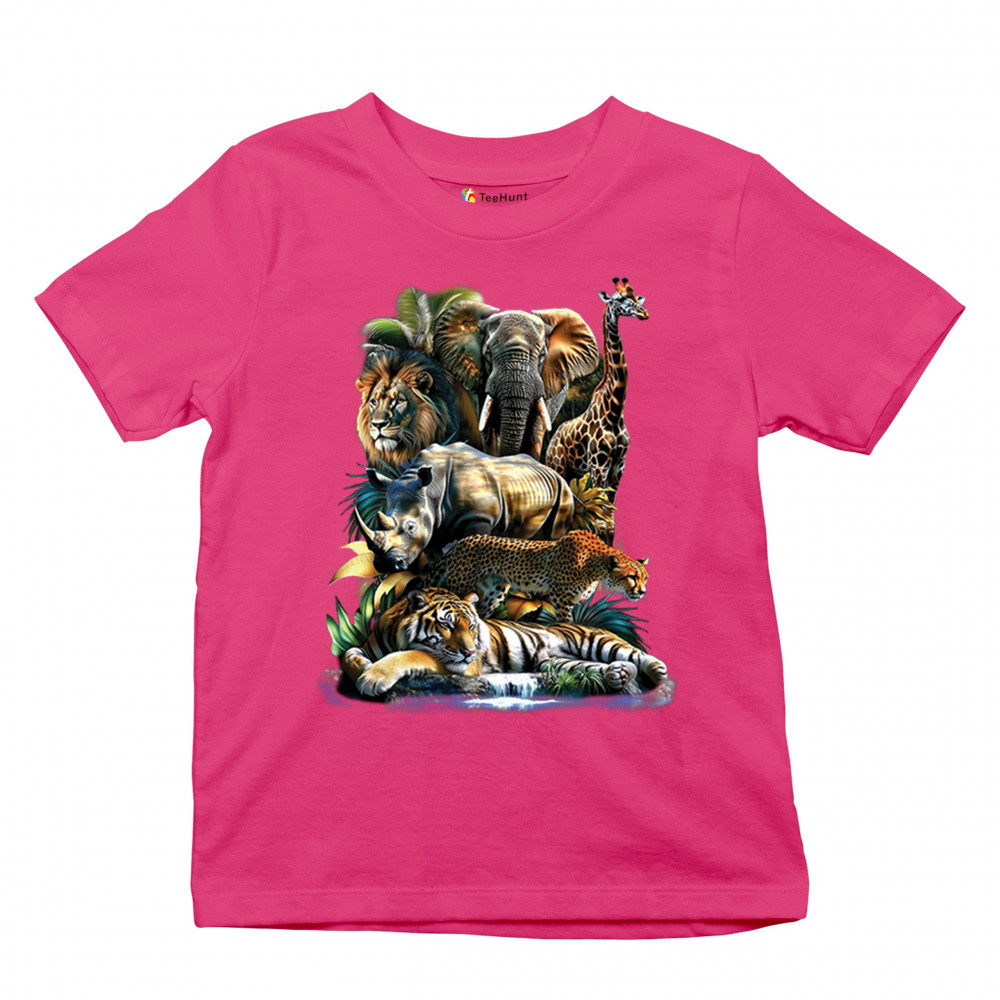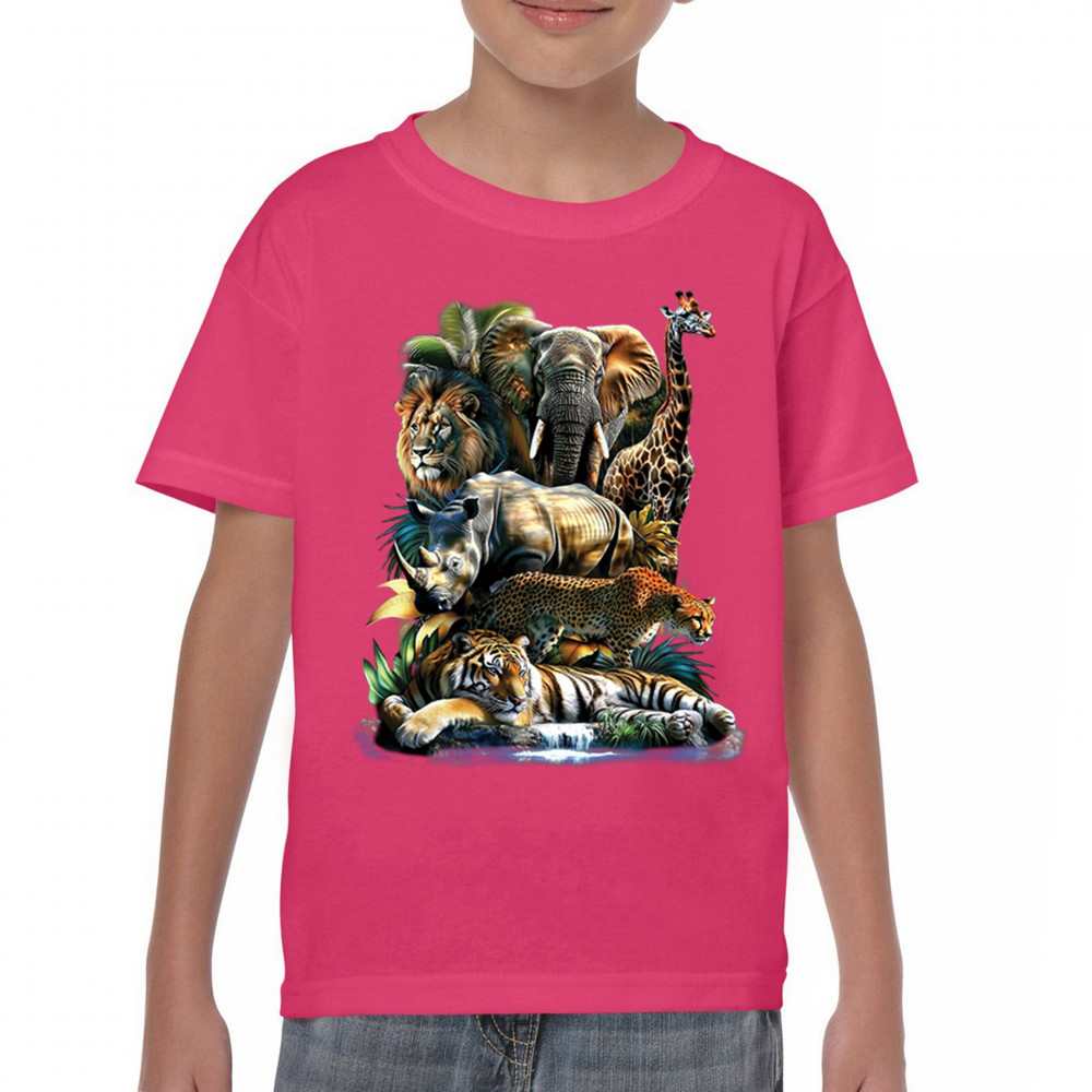 Wildlife design with lion, tiger, giraffe, rhino, cheetah, and elephant. Perfect for animal lovers and safari fans who embrace nature’s fierce spirit.