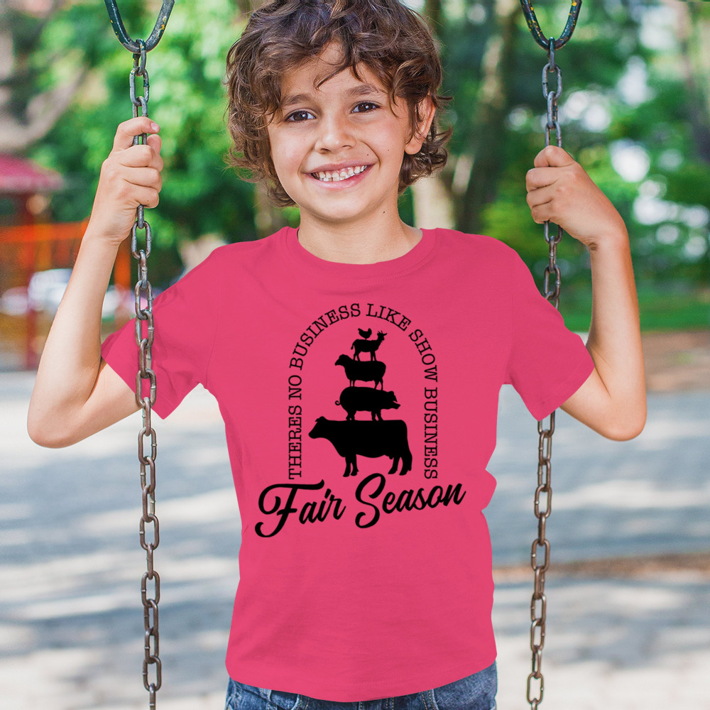 Embrace the spirit of fair season with our "Fair Season" design, ideal for anyone who loves farm animals and the excitement of fairs. Featuring silhouettes of a chicken, goat, sheep, and cow stacked together, this design brings a touch of whimsy and fun to any occasion. Perfect for 4-H members, farmers, and fair enthusiasts, it's a great way to express your love for agricultural fairs and farm life. This design makes an excellent gift, capturing the essence of show business and the joy of the fair season.