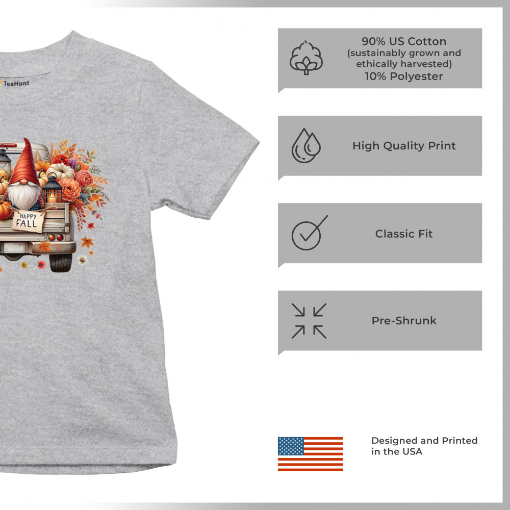 Bring fall charm into your wardrobe with this rustic gnome truck design. Overflowing with pumpkins, wildflowers, and a glowing lantern, it’s perfect for Thanksgiving, farmhouse gatherings, harvest festivals, and celebrating the floral autumn season in cozy style.