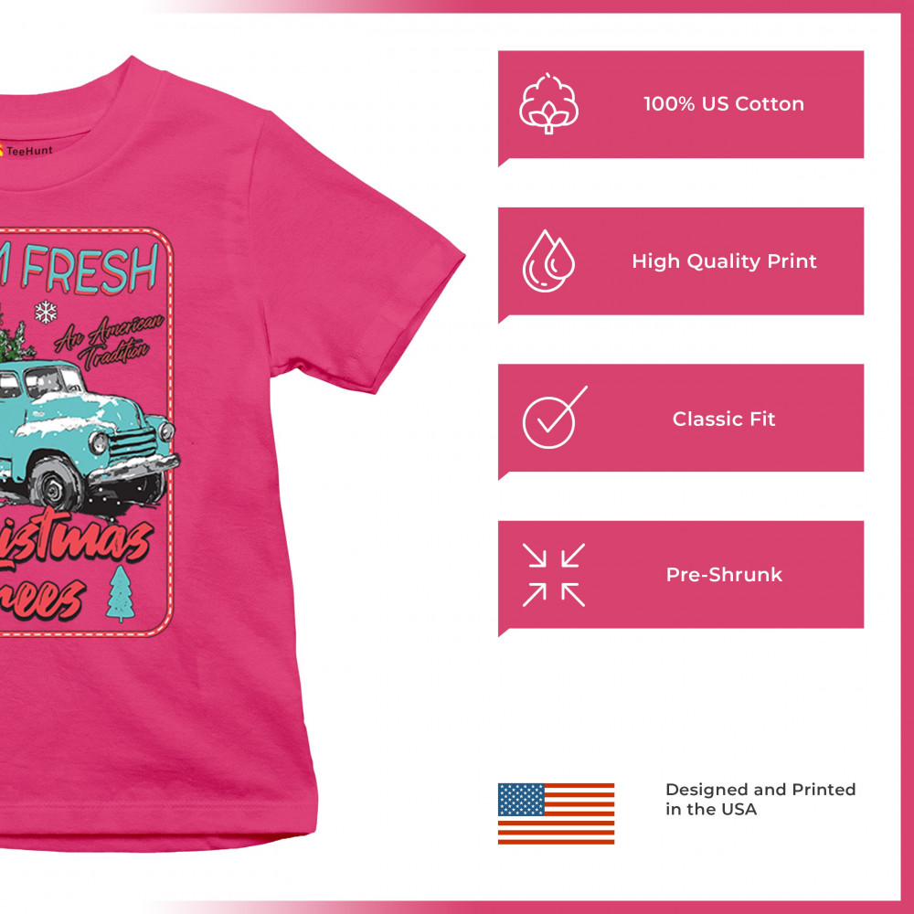 Celebrate the warmth and joy of the holiday season with the "Farm Fresh Christmas Trees" design, a nod to timeless American Christmas traditions. Perfect for matching family outfits, cozy holiday mornings, Secret Santa gifts, or adding a festive touch to any event, this design embodies the spirit of Christmas. From Rudolph and Santa to cozy evenings by the tree, let this design be part of your family’s holiday tradition.