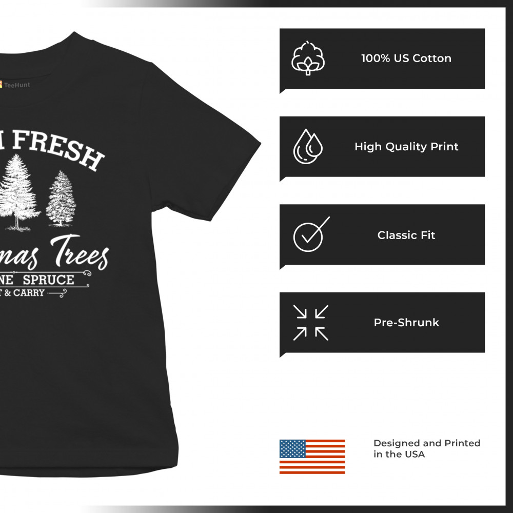 Add a nostalgic touch to your holiday celebrations with this "Farm Fresh Christmas Trees" design. Featuring fir, pine, and spruce trees, it’s ideal for Christmas lovers, matching family pajamas, or even festive gatherings. Perfect for cozy holiday mornings, Secret Santa gifts, or holiday office parties, this design brings a touch of rustic charm to any setting. Capture the spirit of the season with this delightful holiday print, designed to spread cheer and warmth.