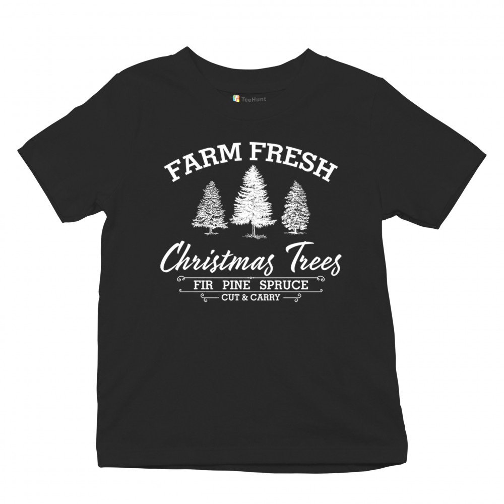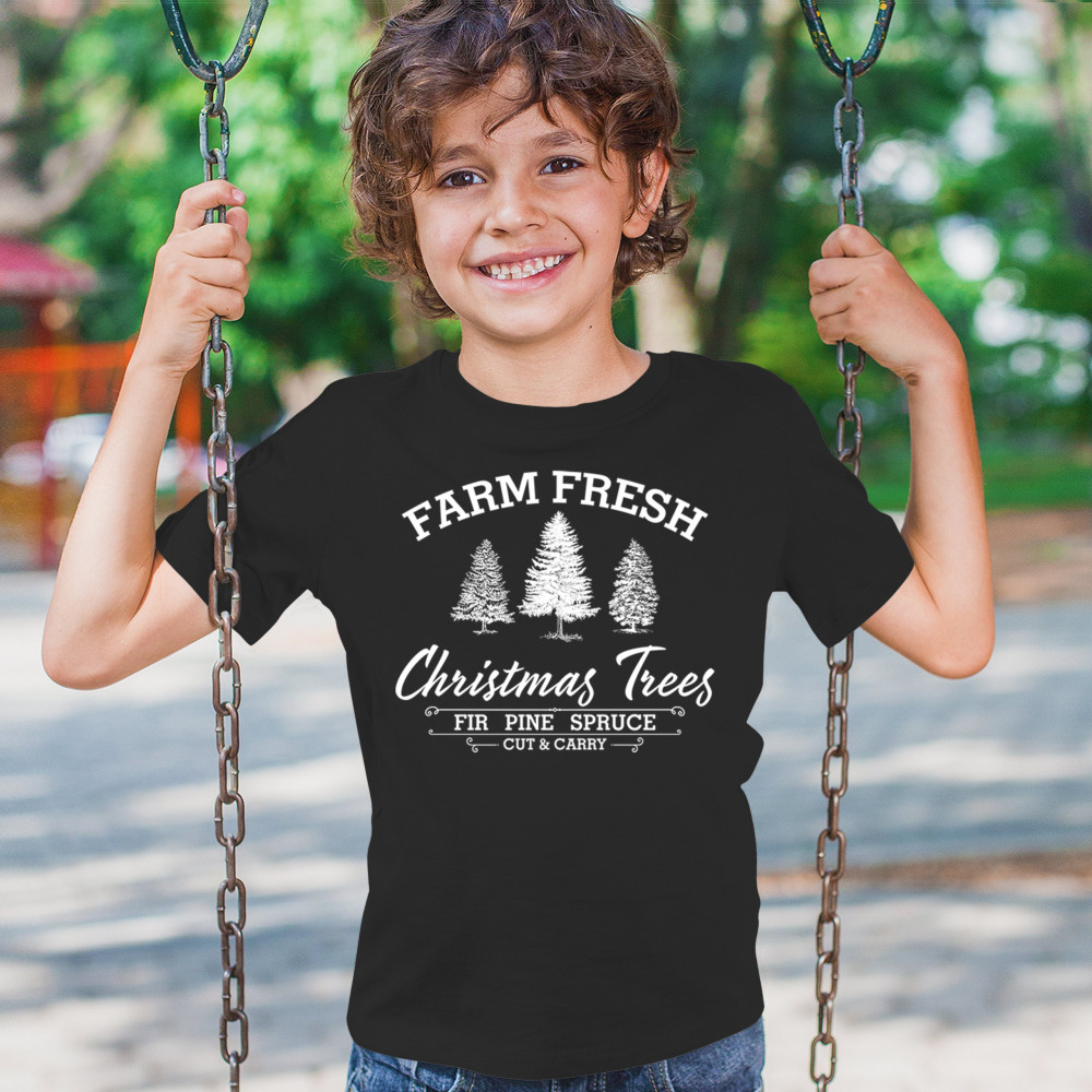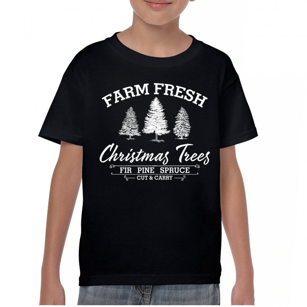 FARM FRESH CHRISTMAS TREES youth t-shirt xmas holiday spirit festive kids black