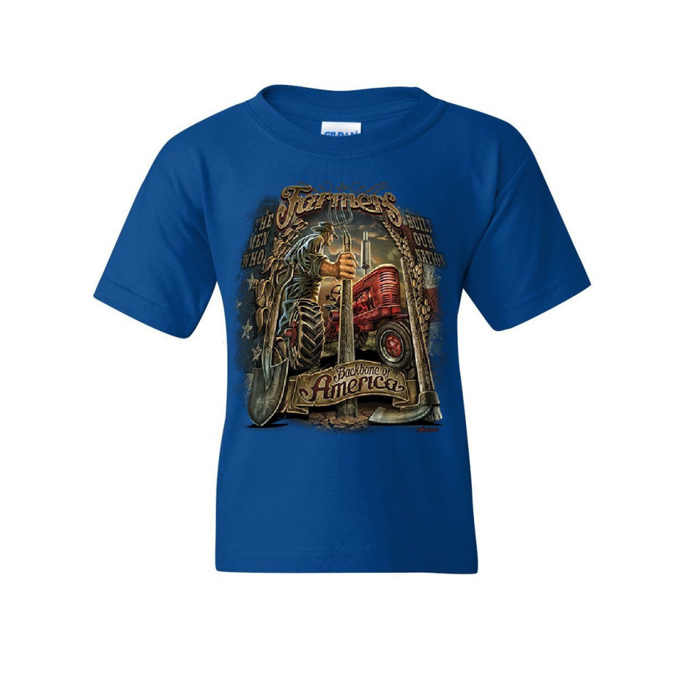 FARMERS BACKBONE OF AMERICA youth t-shirt countryside farming patriot kids tee royal blue