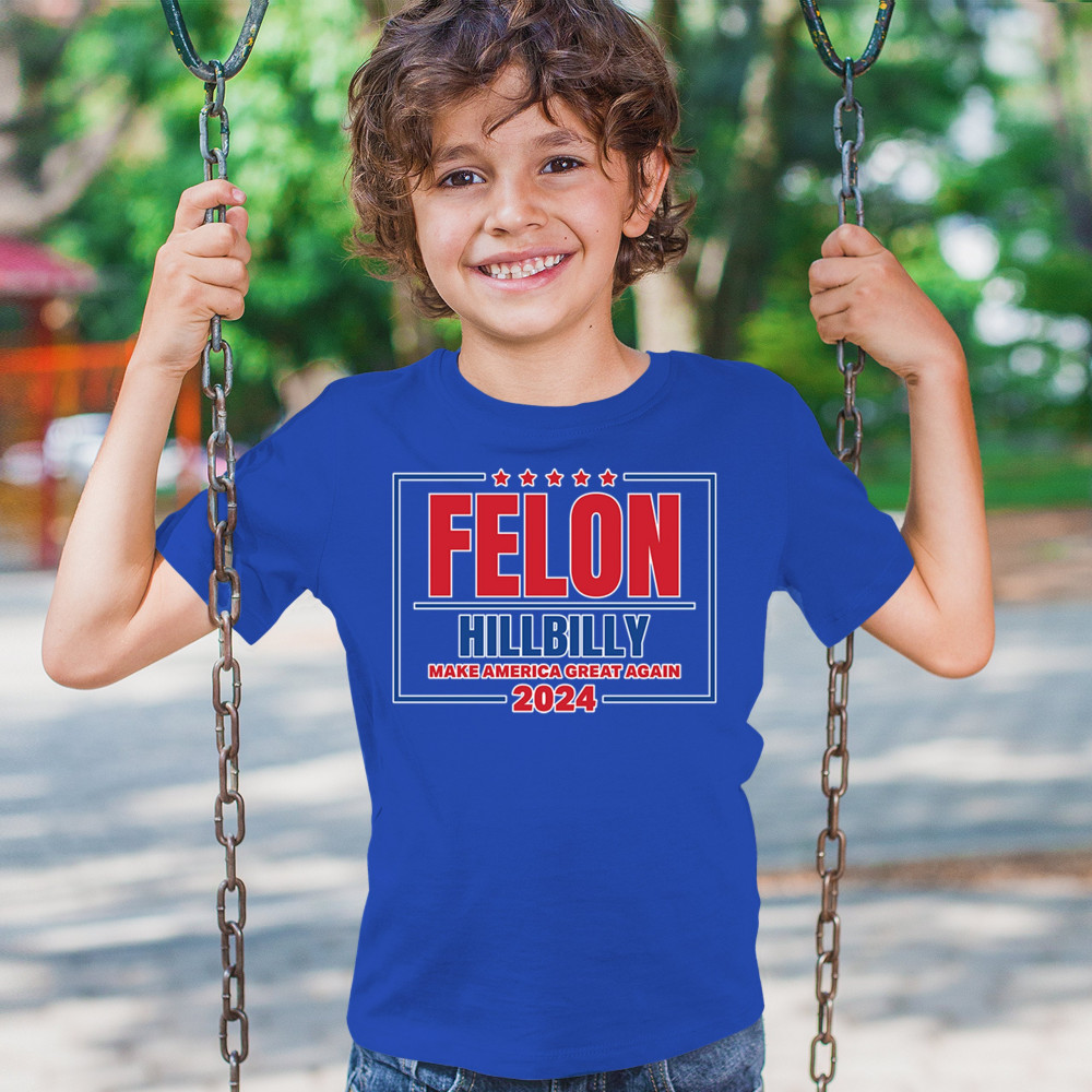 he "Felon Hillbilly 2024" design is perfect for Trump supporters, embodying conservative values and American pride.