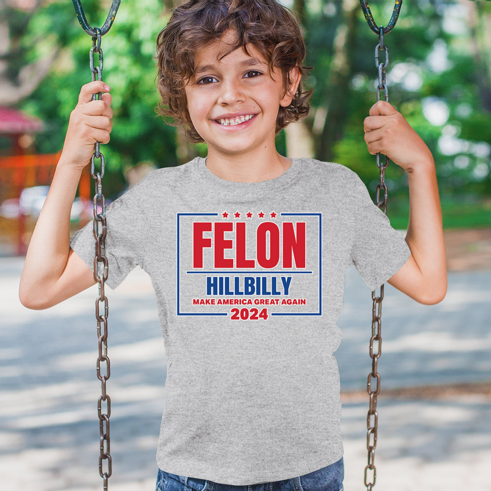 he "Felon Hillbilly 2024" design is perfect for Trump supporters, embodying conservative values and American pride.