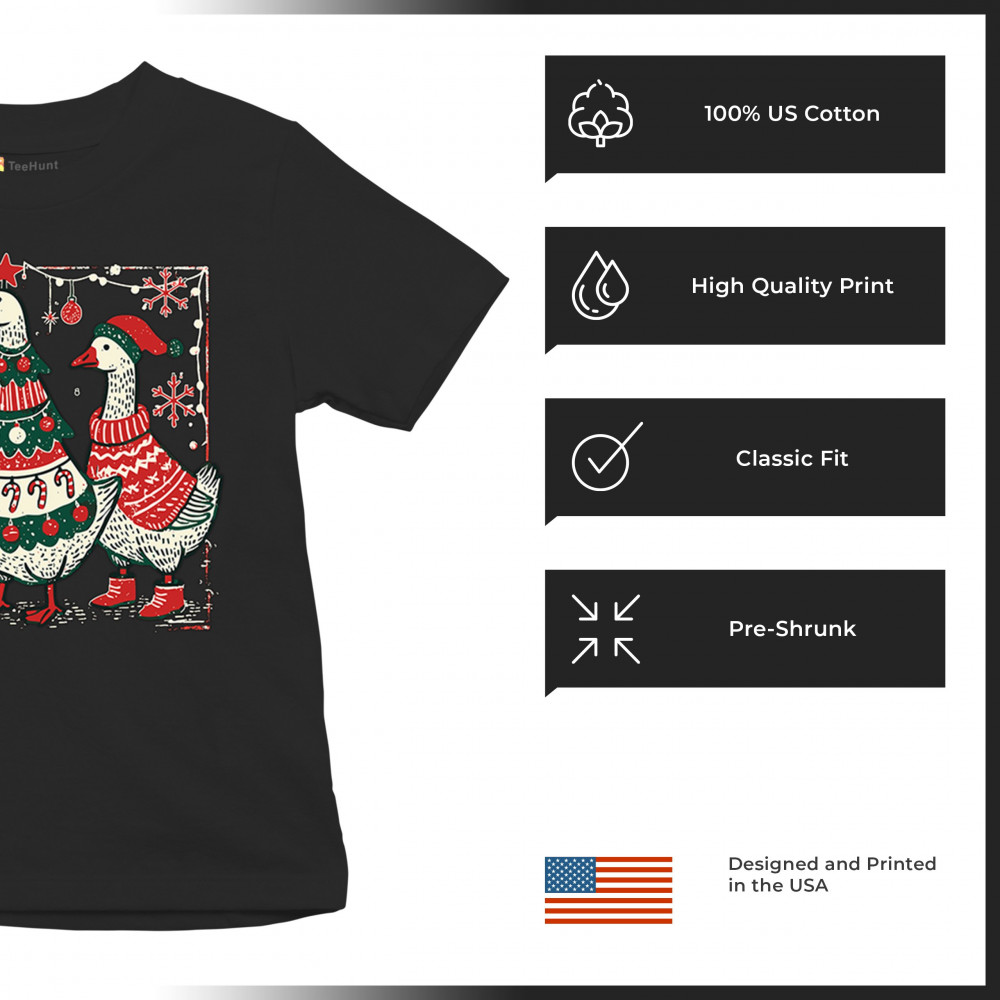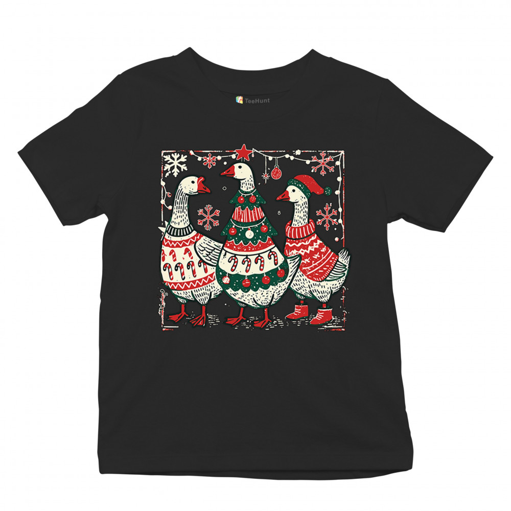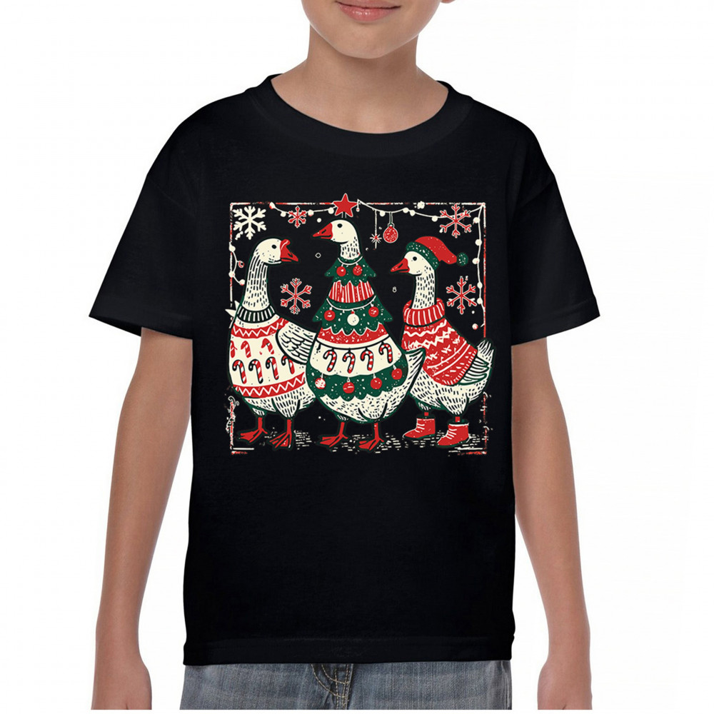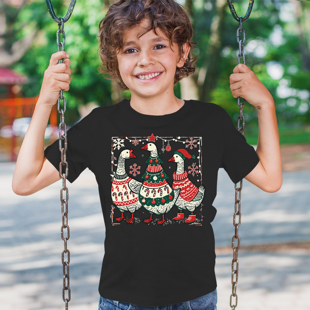 FESTIVE CHRISTMAS GEESE youth t-shirt fun santa ugly sweater xmas party kids black
