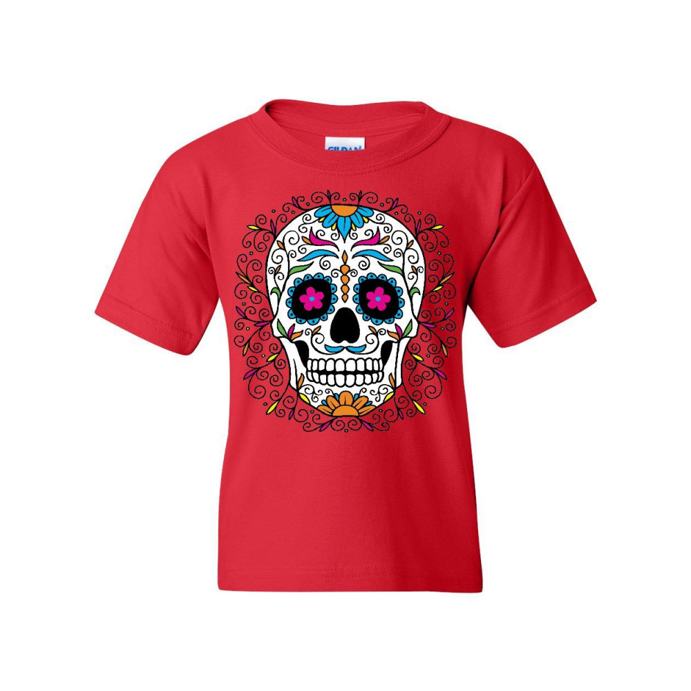 FLORAL SUGAR SKULL DAY OF THE DEAD youth t-shirt dia de los muertos red