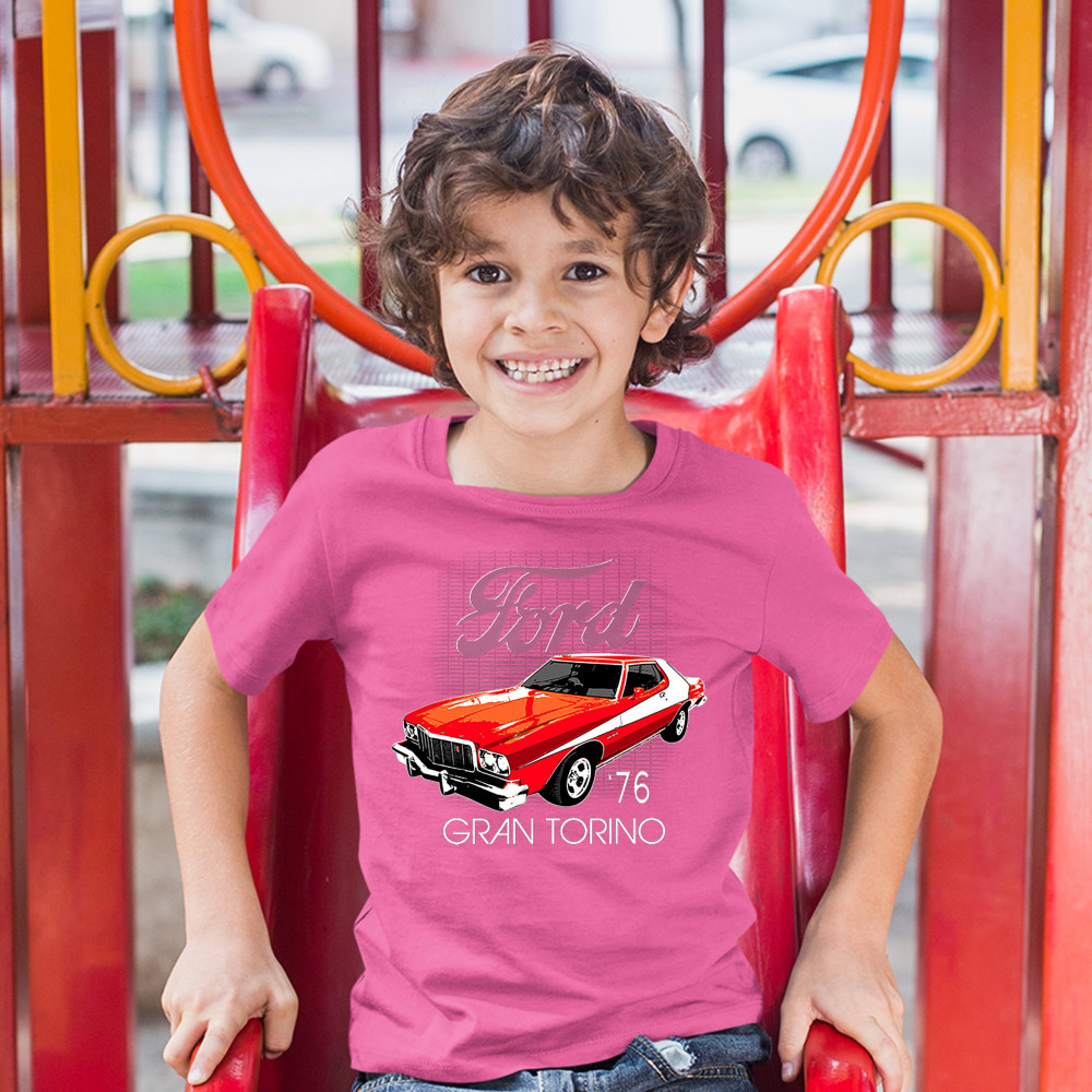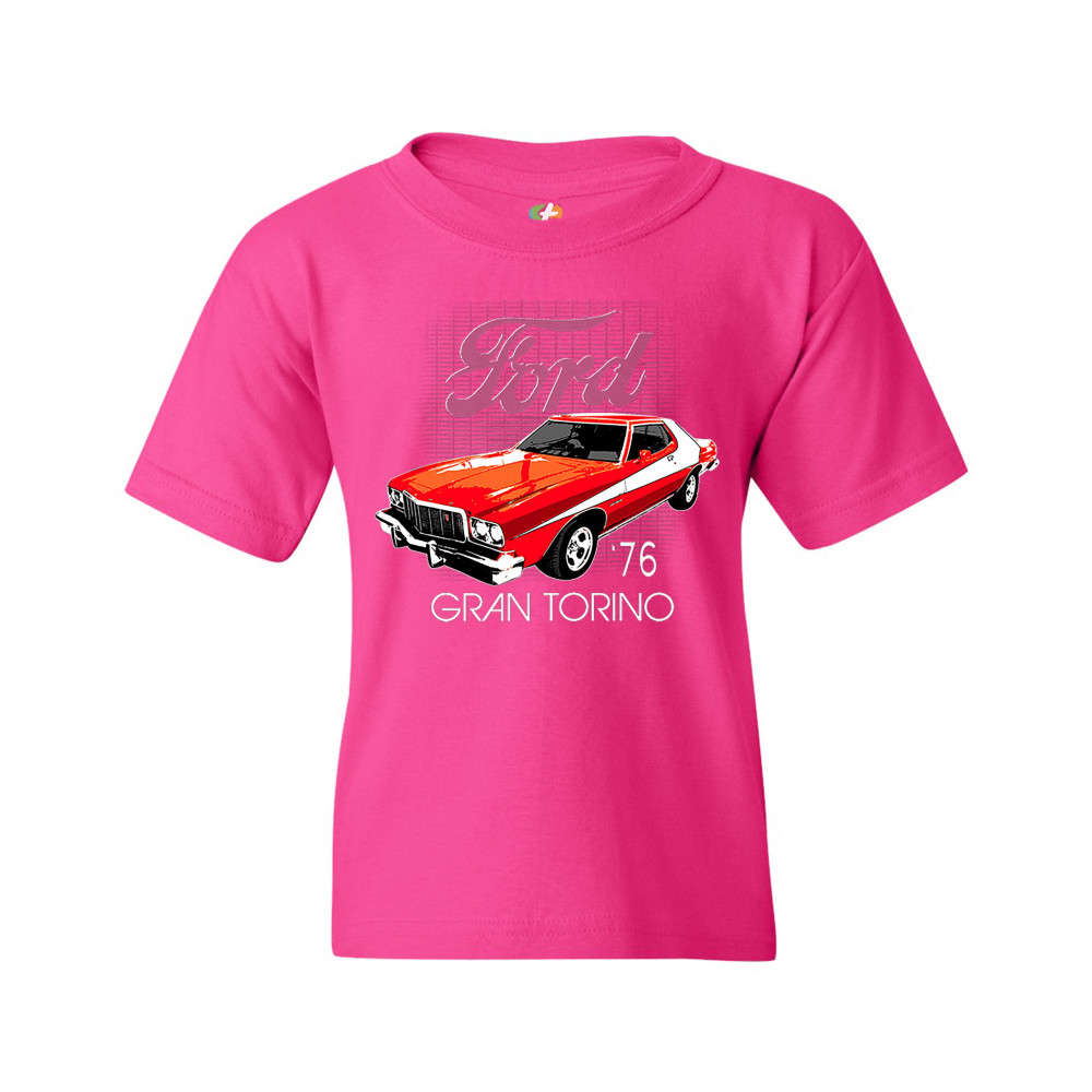 FORD '76 GRAN TORINO youth t-shirt 1976 american muscle car licensed kids pink