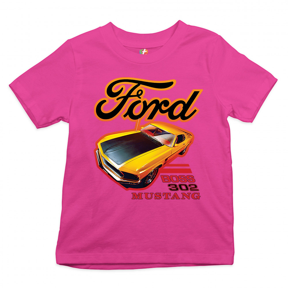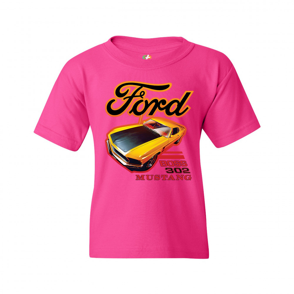 FORD BOSS 302 MUSTANG youth t-shirt vintage american muscle car licensed kids pink