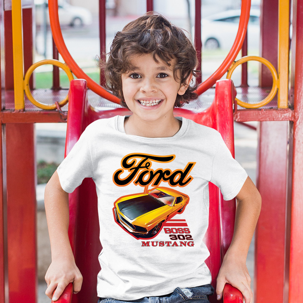 FORD BOSS 302 MUSTANG youth t-shirt vintage american muscle car licensed kids white