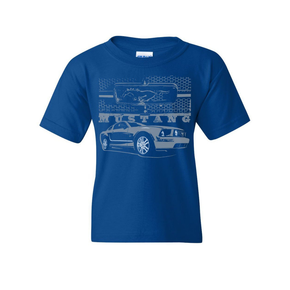 FORD HONEYCOMB GRILLE youth t-shirt mustang silhouette us muscle car kids tee royal blue