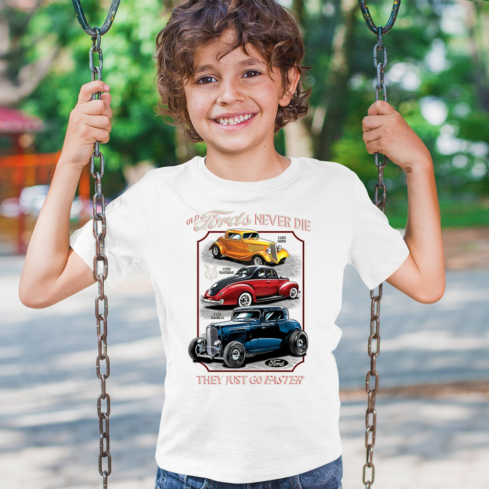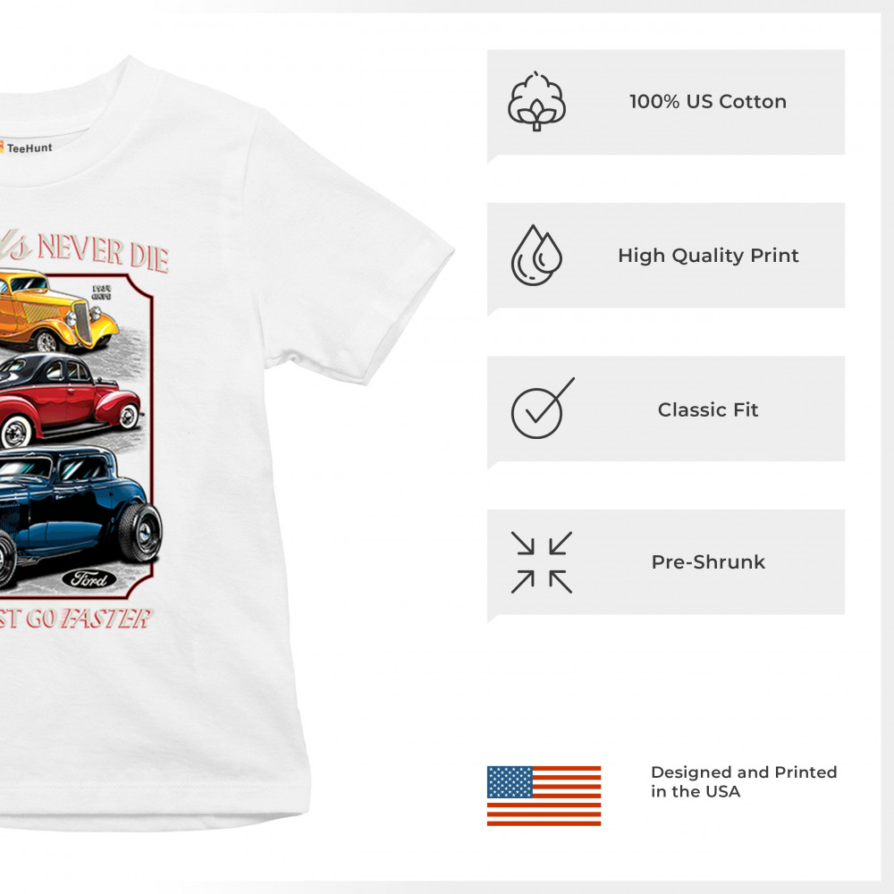 This retro design features three legendary Ford hot rods from the 1930s and 1940s, boldly rendered in a tribute to American street rod history. Ideal for muscle car lovers, vintage performance fans, and classic car culture enthusiasts who appreciate timeless speed. A must-have for cruise nights, garage hangs, and car shows.
