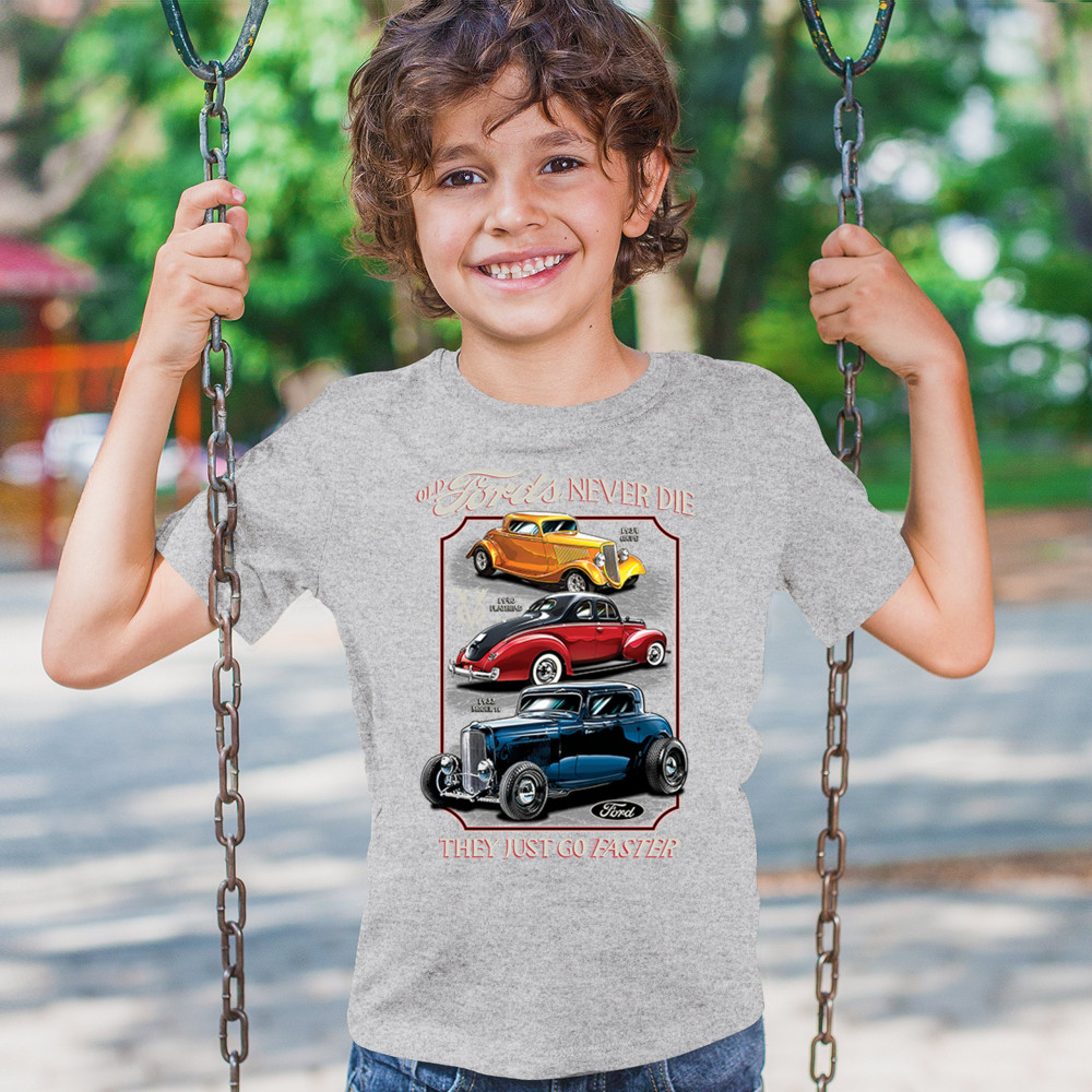 This retro design features three legendary Ford hot rods from the 1930s and 1940s, boldly rendered in a tribute to American street rod history. Ideal for muscle car lovers, vintage performance fans, and classic car culture enthusiasts who appreciate timeless speed. A must-have for cruise nights, garage hangs, and car shows.