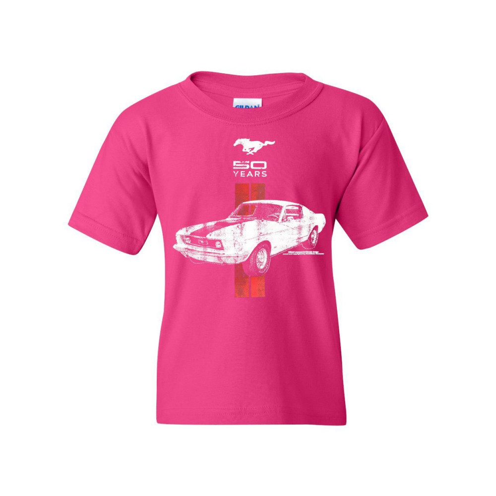 FORD MUSTANG 50 YEARS youth t-shirt gt boss 302 shelby cobra tee pink