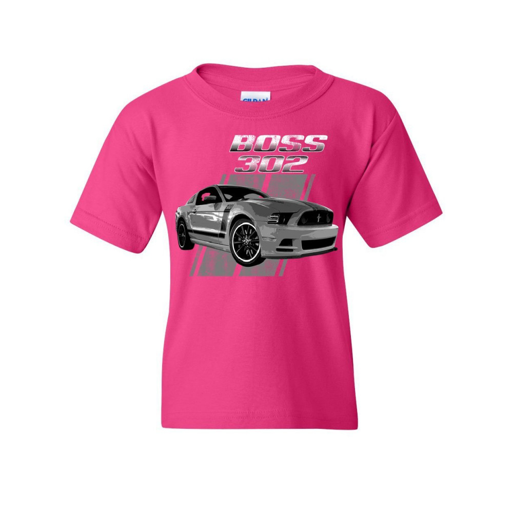 FORD MUSTANG BOSS 302 youth t-shirt 50 years anniversary muscle car kids tee pink