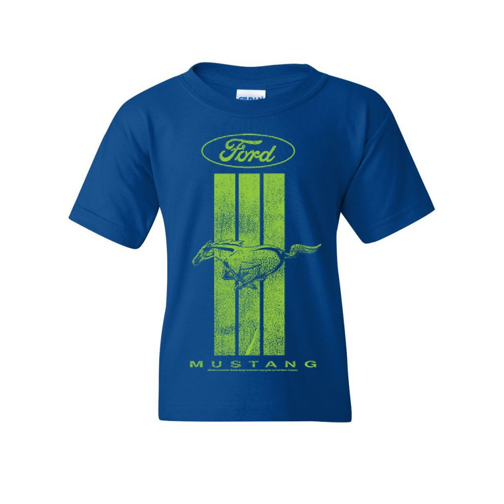 FORD MUSTANG GREEN STRIPE youth t-shirt classic american muscle car kids tee royal blue