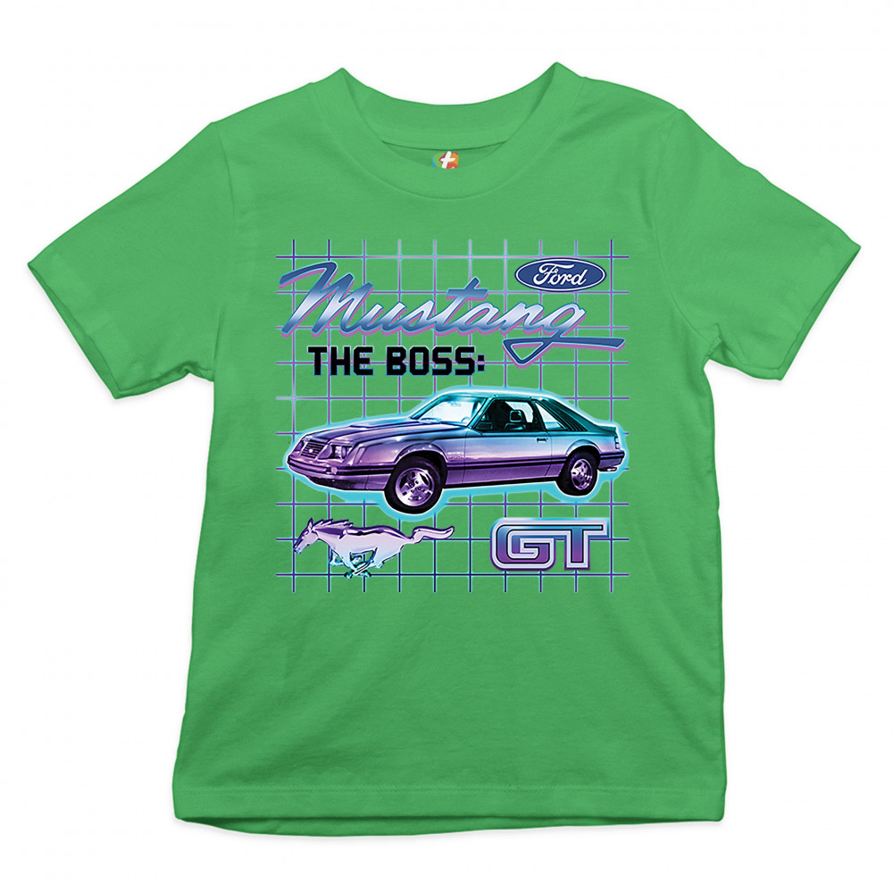 FORD MUSTANG GT THE BOSS youth t-shirt vintage neon car retro licensed kids green