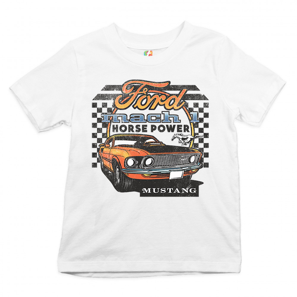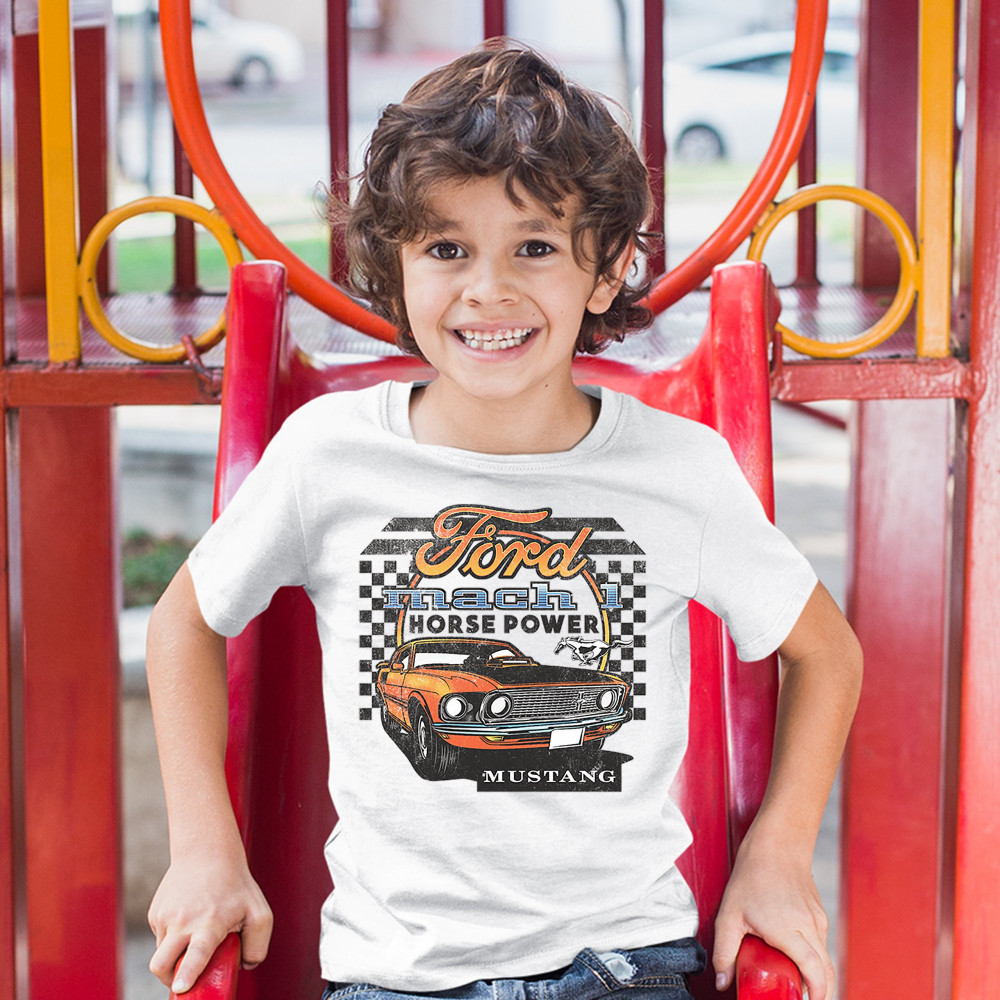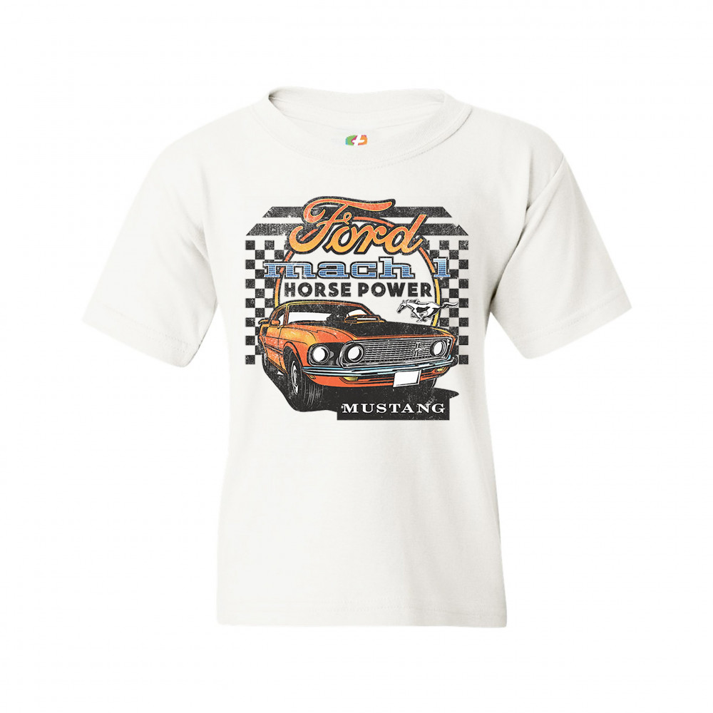 FORD MUSTANG MACH 1 youth t-shirt horse power american muscle licensed kids white