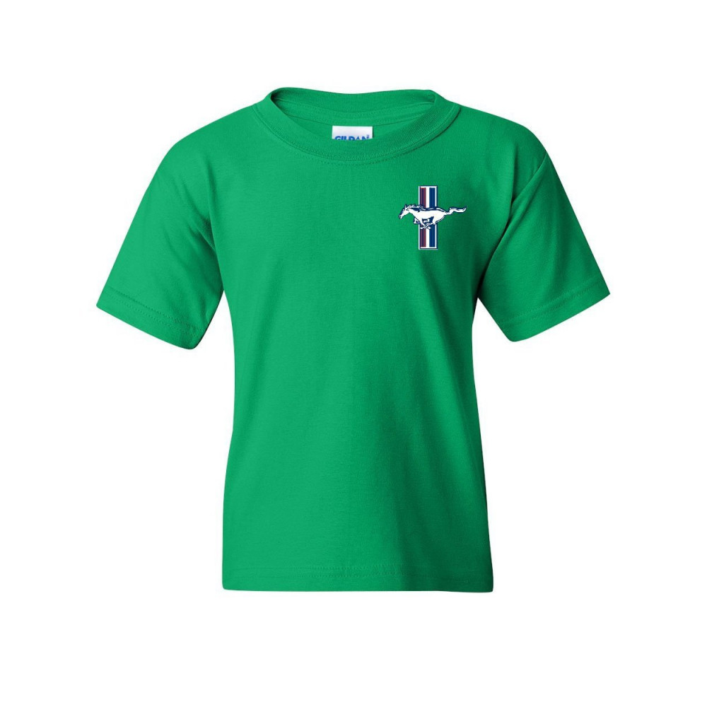 FORD MUSTAND THE LEGEND LIVES LOGO youth t-shirt classic muscle cars kids tee green